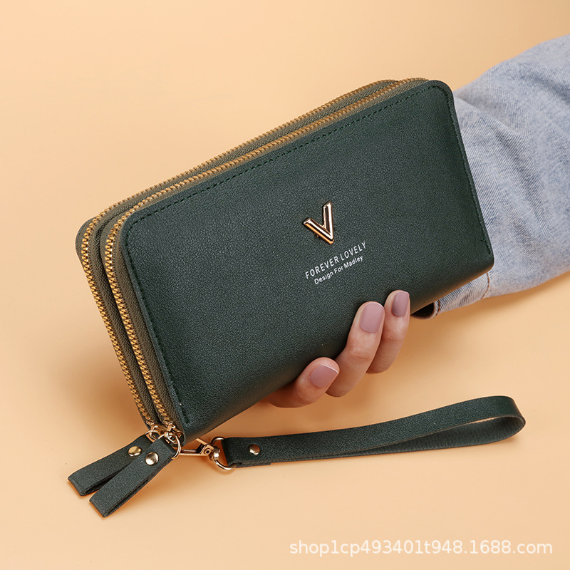 공장 도매 지갑 여성용 더블 레이어 지퍼 동전 지갑 여성용 클러치 백 휴대 전화 보관 가방 여성용 대용량 카드 가방스토어 가기