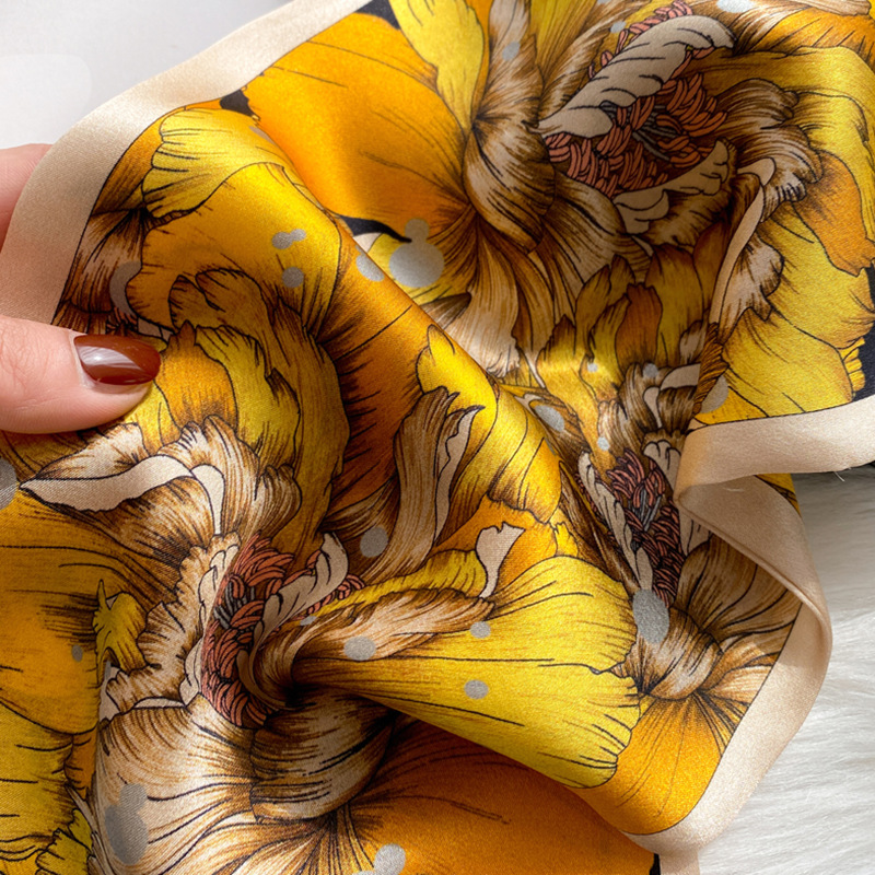 杭州丝绸黑金腰果真丝围巾女春秋季百搭缎面方巾桑蚕丝丝巾披肩