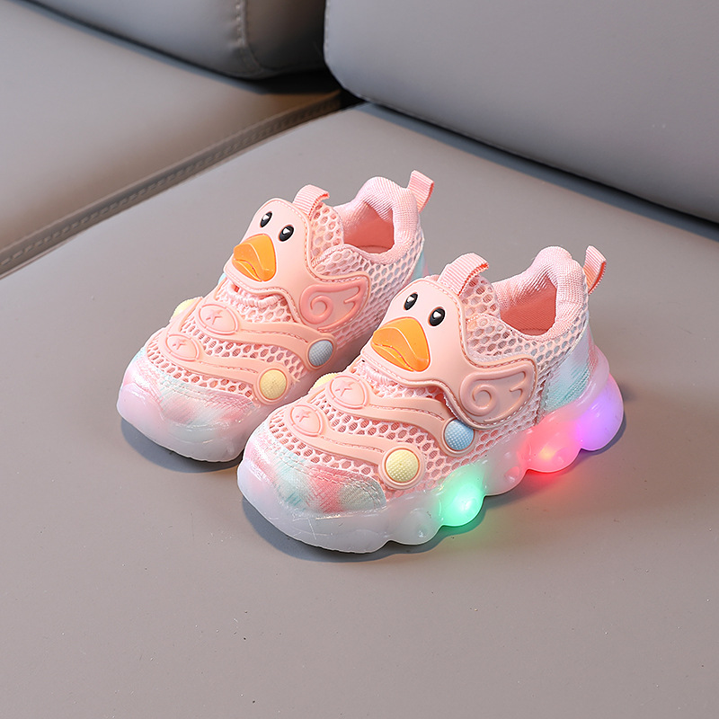 2025 여름 단일 메쉬 어린이 유아 신발 LED 깜박이는 빛 1-3 세 아기 스포츠 신발 부드러운 바닥 미끄럼 방지 소녀 캐주얼스토어 가기