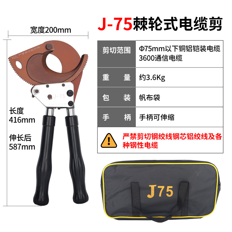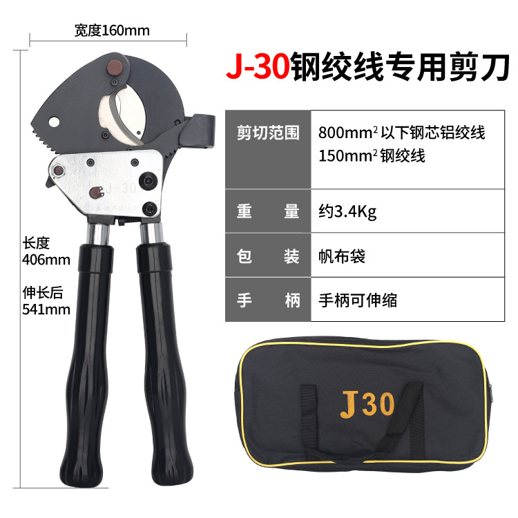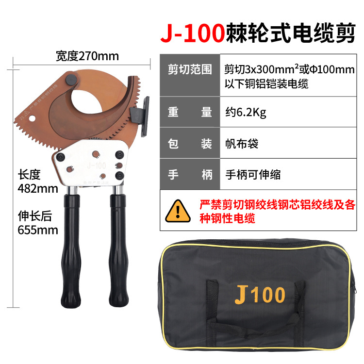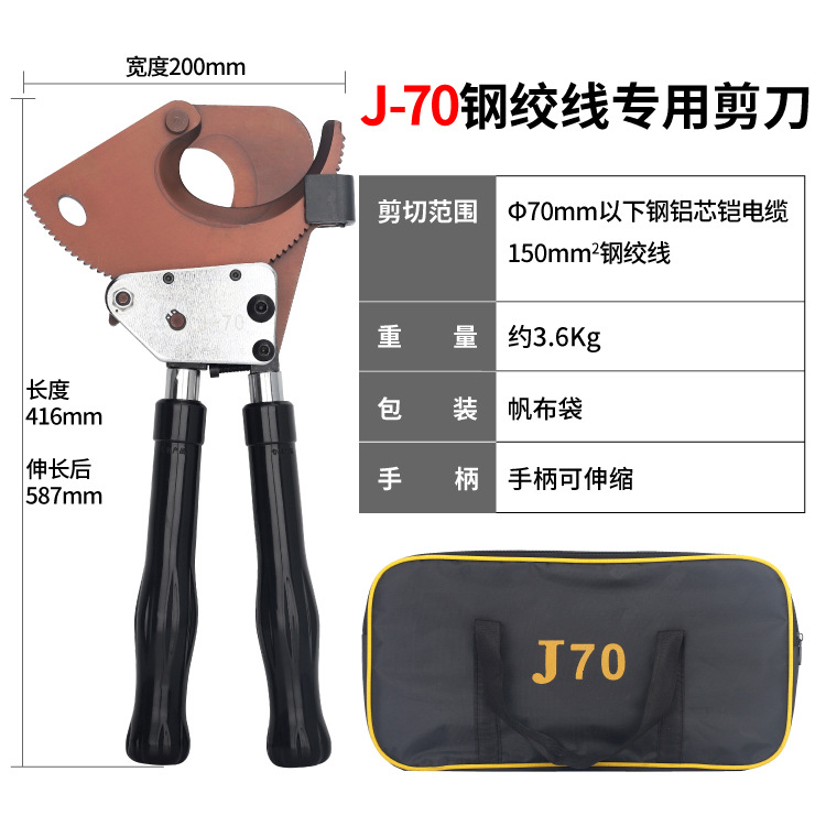 래칫 타입 전단 케이블 가위 J40J52J75J95J100 수동 기어 스틸 스트랜드 와이어 커터 케이블 전단