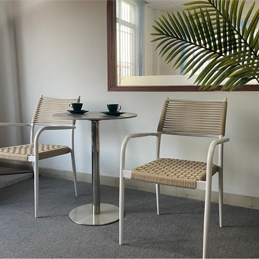 야외 등나무 테이블과 의자, 안뜰 3피스 세트, 정원 테라스, 호텔 레스토랑, 카페, 레저용 1인용 등나무 의자 조합스토어 가기