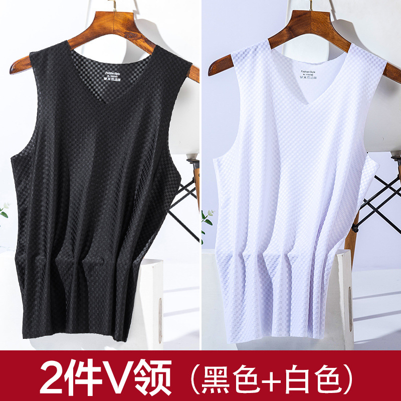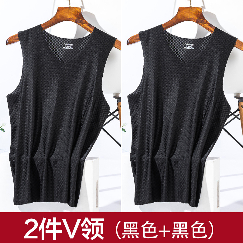2 팩 아이스 실크 속건 조끼 남성 여름 겉옷 추적 없는 얇은 슬림 핏 메쉬 스포츠 와이드 숄더 민소매 티셔츠 트렌디