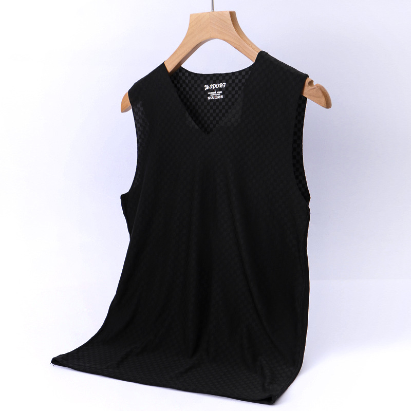 2 팩 아이스 실크 속건 조끼 남성 여름 겉옷 추적 없는 얇은 슬림 핏 메쉬 스포츠 와이드 숄더 민소매 티셔츠 트렌디스토어 가기