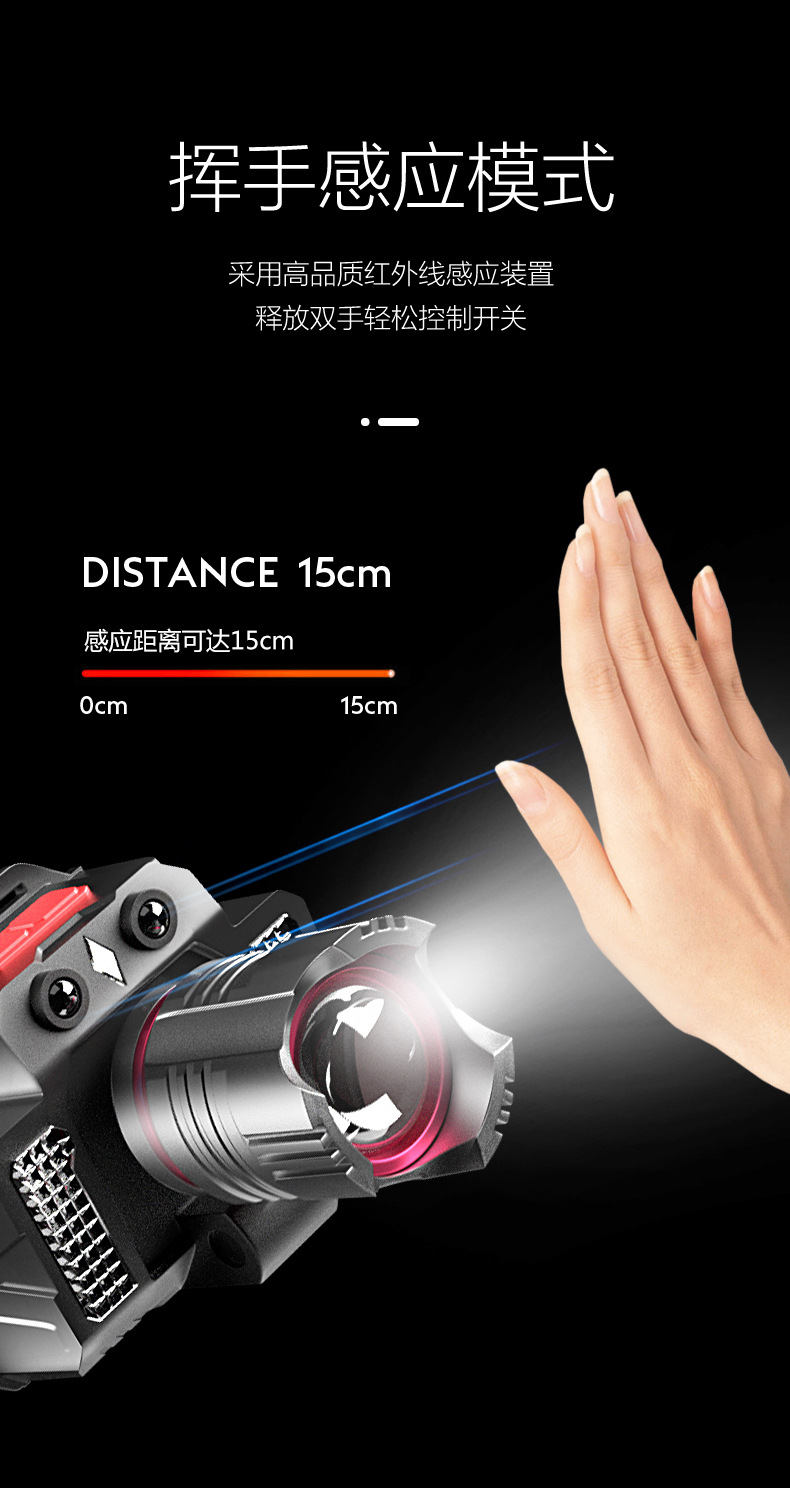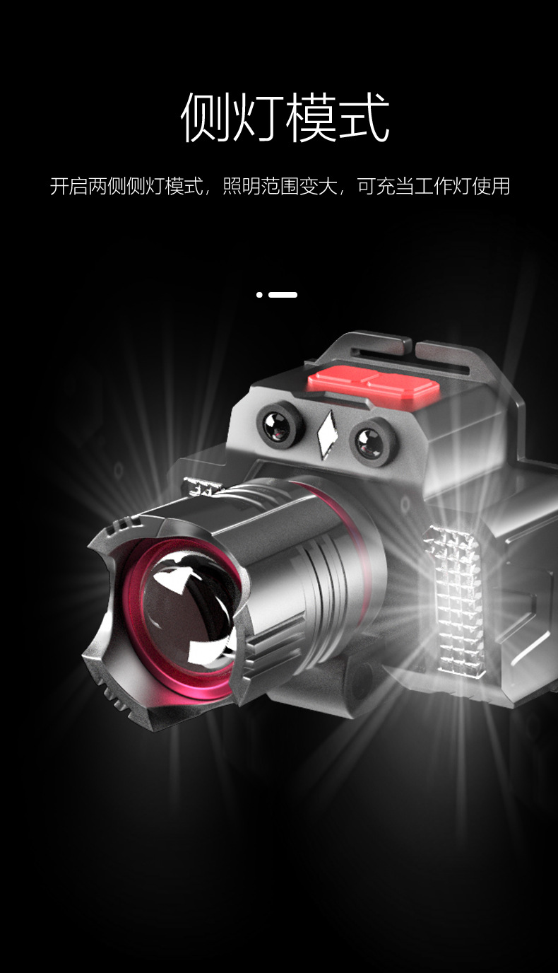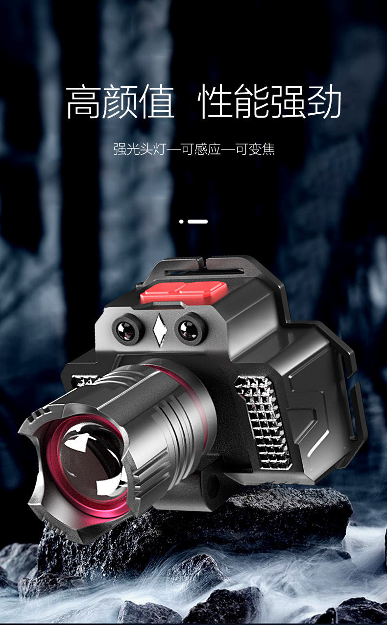 크로스 보더 강한 조명 유도 전조등 USB 충전 텔레스코픽 포커싱 비상 측면 조명 헤드 마운트 실외 조명 손전등스토어 가기
