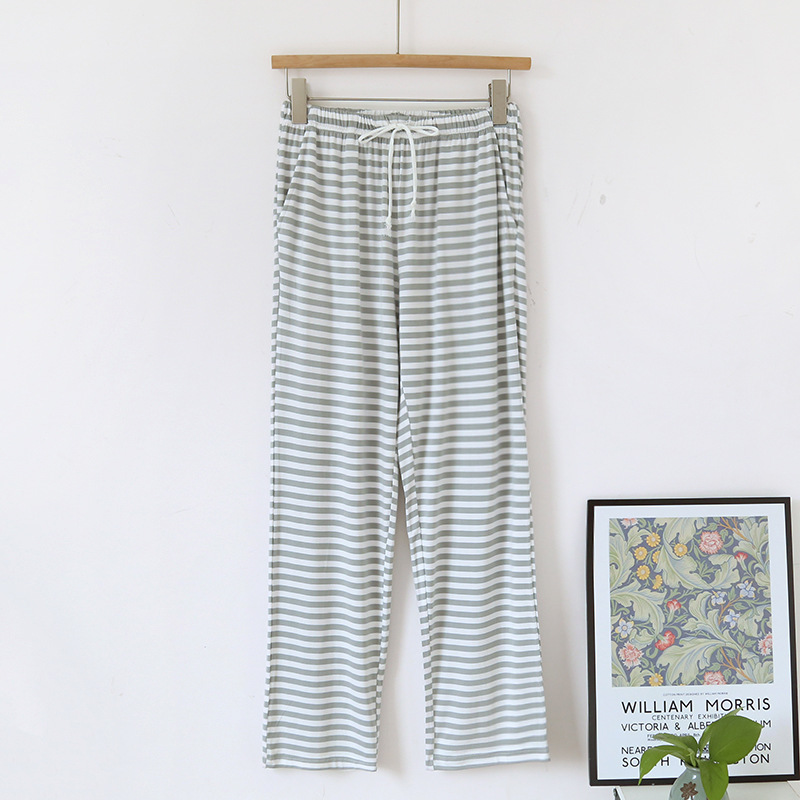 여성용 바지 일본식 봄과 가을 여름 모달 스트라이프 가정용 바지 포켓 얇은 심플 느슨한 잠옷 바지