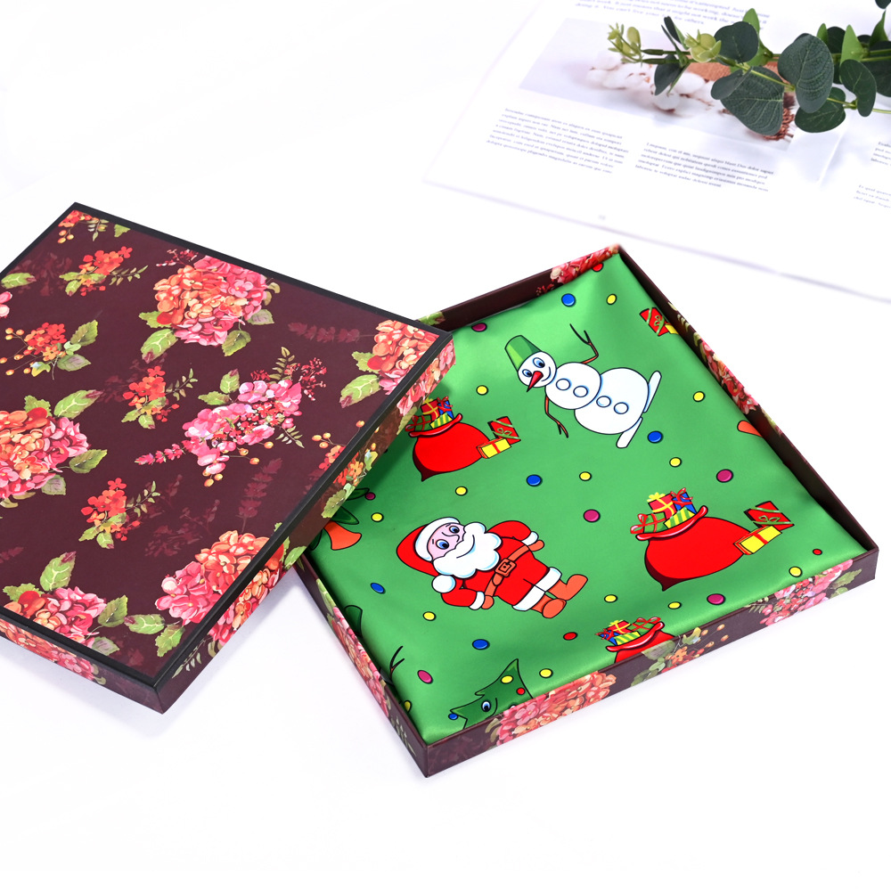 새로운 산타 클로스 모조 실크 스카프 녹색 휴일 맛 유럽과 미국 패션 대형 사각 스카프 정저우 공장 사용자 정의스토어 가기