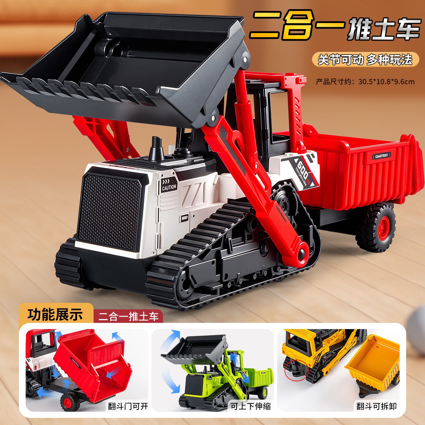 • 22002 [합금 삽 머리] 회색 빨간색 - 덤프 불도저
