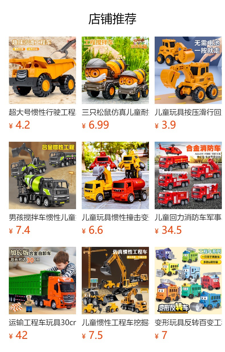 어린이 관성 공학 차량 굴삭기 장난감 푸시 굴삭기 팁 지게차 스톨 자동차 모델 소년 굴삭기스토어 가기