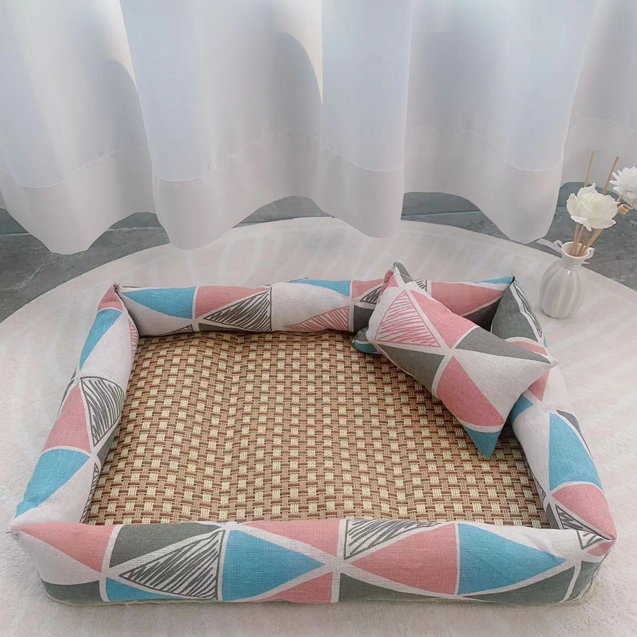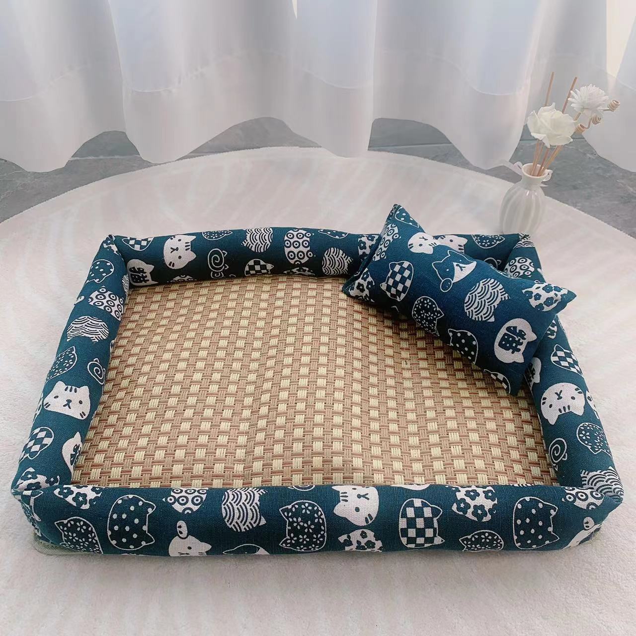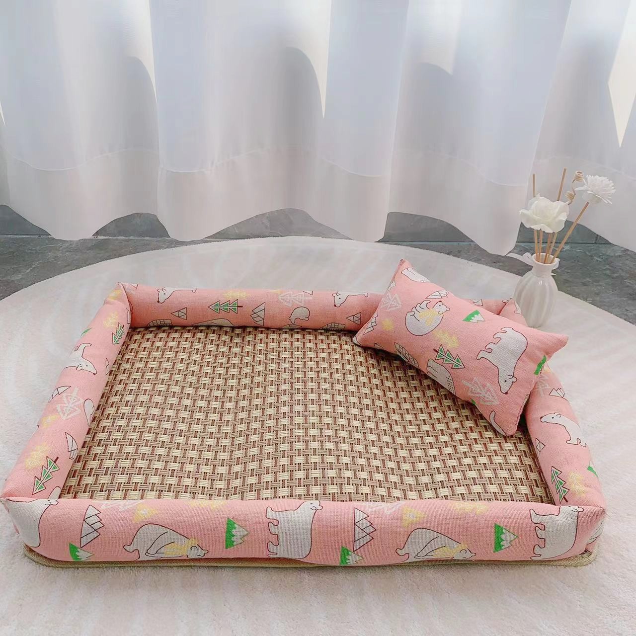 [공급 세대] 여름 매트 등나무 매트 애완동물 개집 개 사육장 고양이 사육장 애완동물 매트 중소형 애완동물 침대