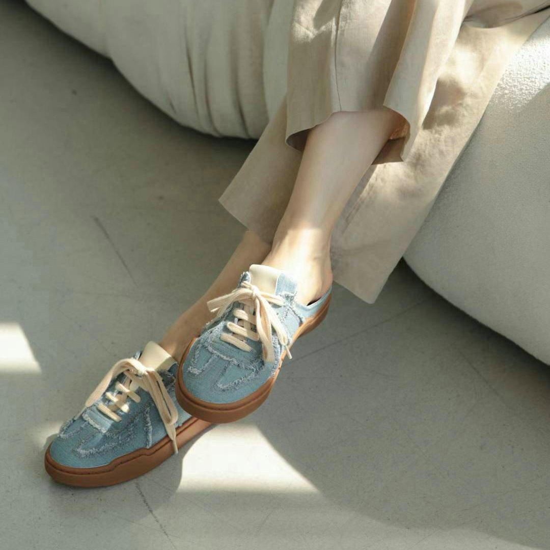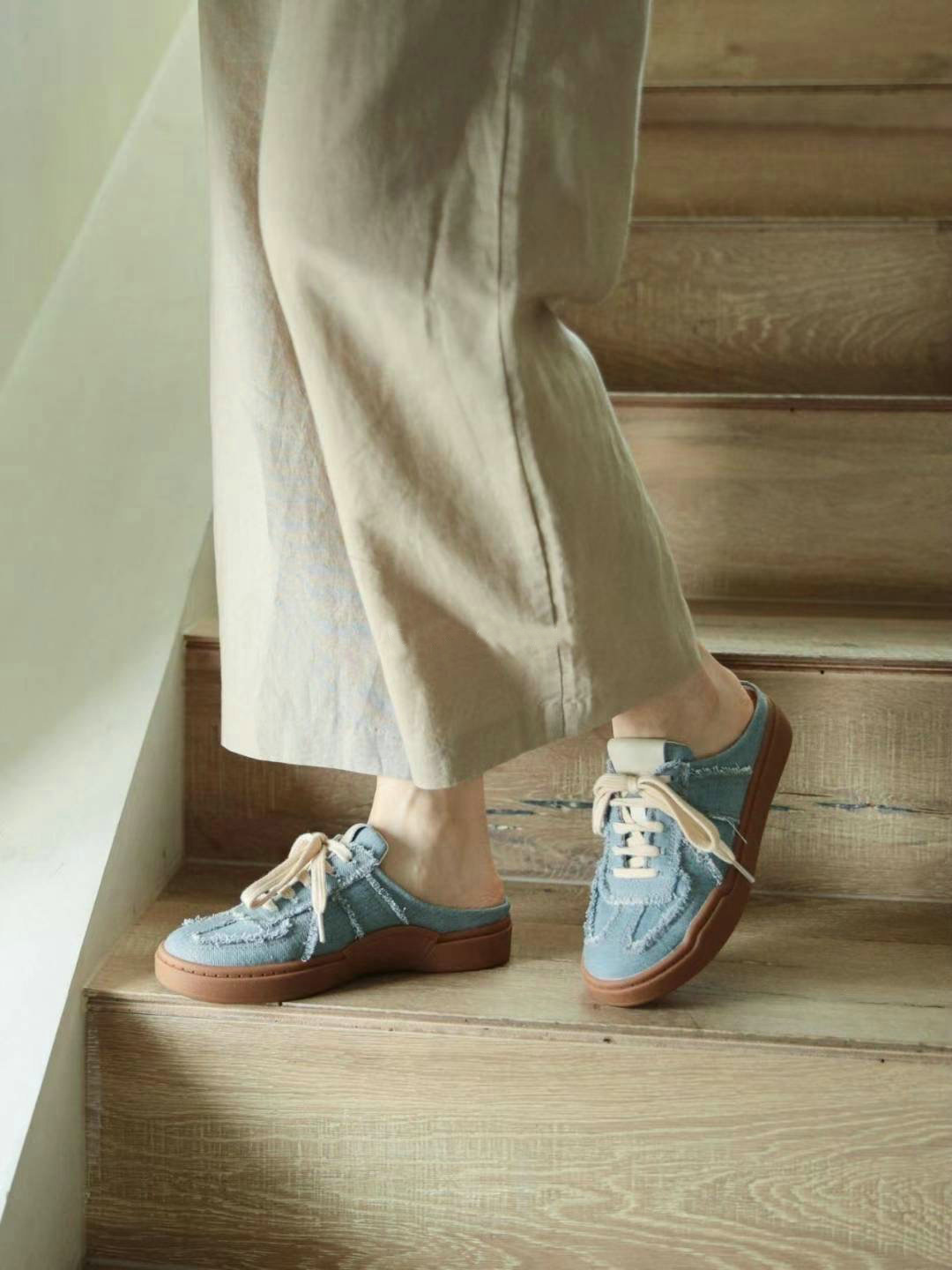 빈티지 술 거지 Desun 신발 캔버스 하프 슬리퍼 여성용 겉옷 부드러운 밑창 두꺼운 밑창 비 힐 캐주얼 스니커즈