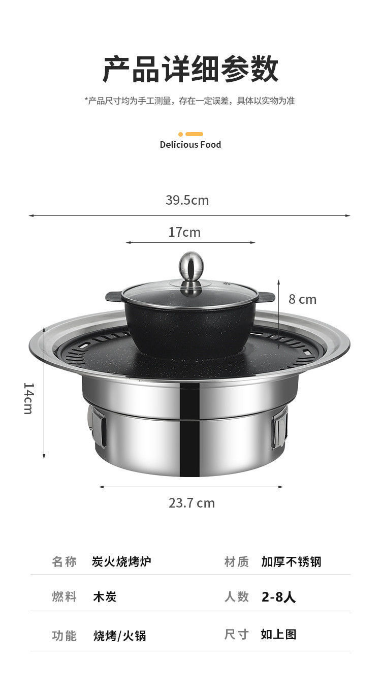냄비 두꺼운 바베큐 팬 가정용 튀김 린스 바베큐 통합 냄비 무연 바베큐 오븐 다기능 야외 숯 그릴