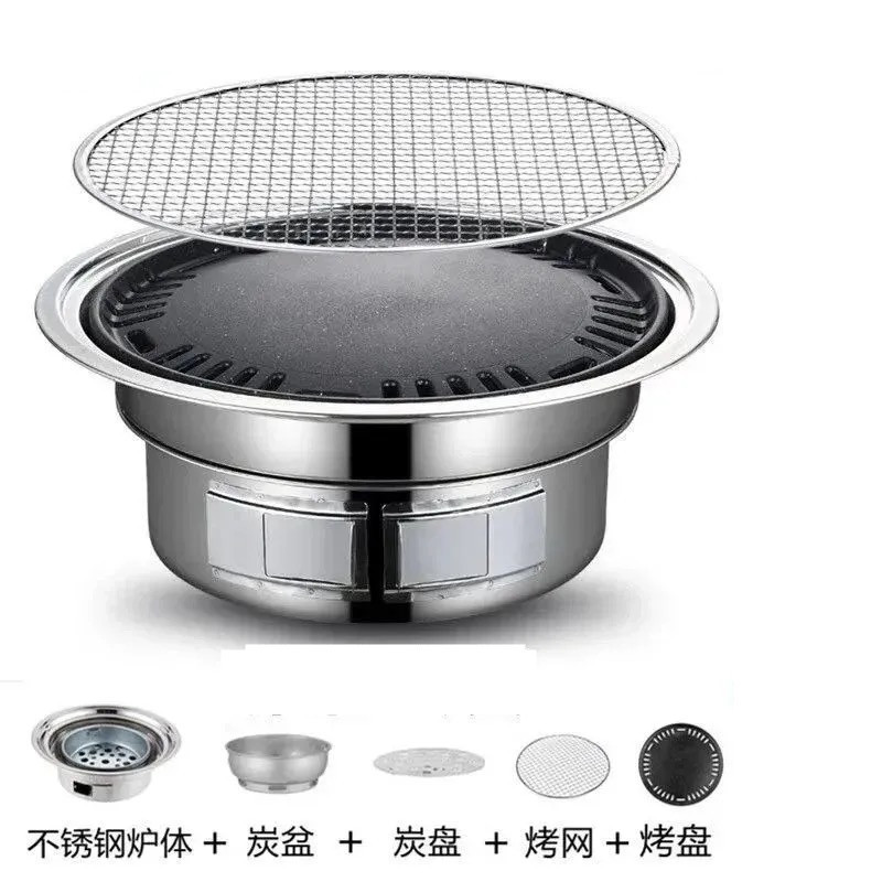 냄비 두꺼운 바베큐 팬 가정용 튀김 린스 바베큐 통합 냄비 무연 바베큐 오븐 다기능 야외 숯 그릴스토어 가기