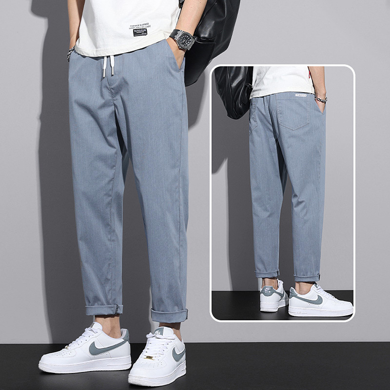 캐주얼 바지 남성 2025 새로운 스트레이트 루즈 웨스턴 바지 여름 얇은 얼음 실크 자른 카고 스웨트 팬츠
