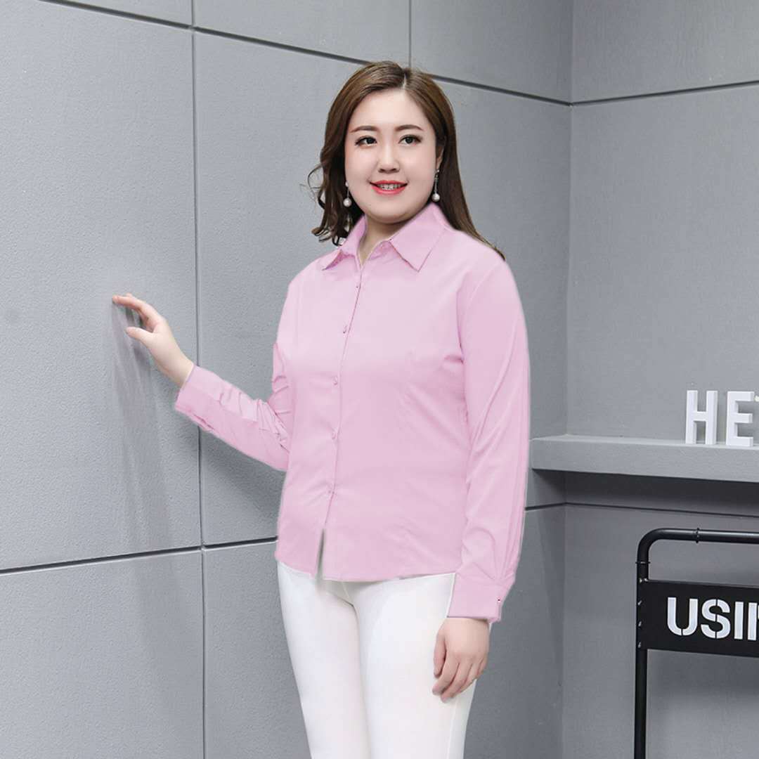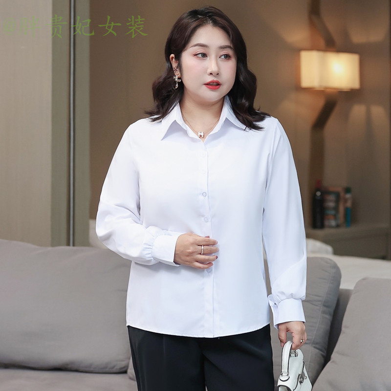 플러스 사이즈 셔츠 여성의 200kg 전문 셔츠 긴 소매 플러스 뚱뚱한 여성의베이스 셔츠 한국어 느슨한 탑스토어 가기
