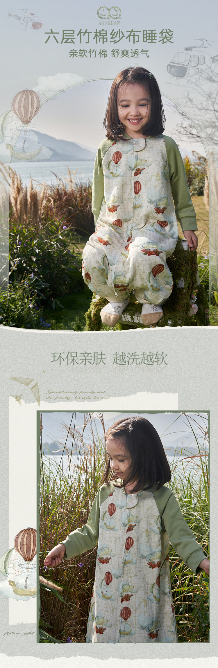 안단 유아용 6겹 대나무 면 거즈 어린이 침낭 봄가을용 큰아이용 발차기 방지 이불 사계절 아기 침낭