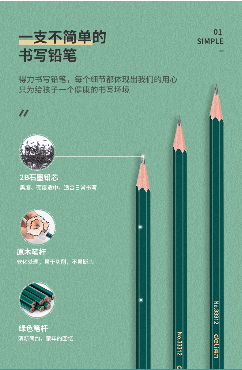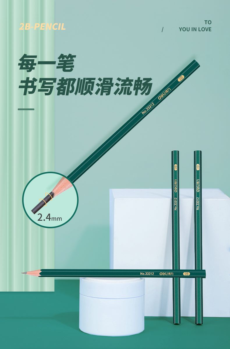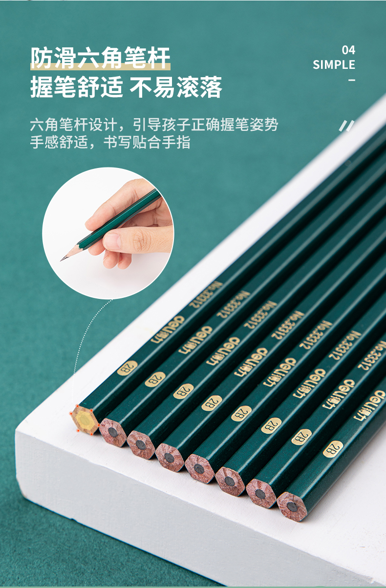 델리 HB 연필 2B 로그 무독성 연필 2H 학생 쓰기 시험 그림 육각형 연필 묘사