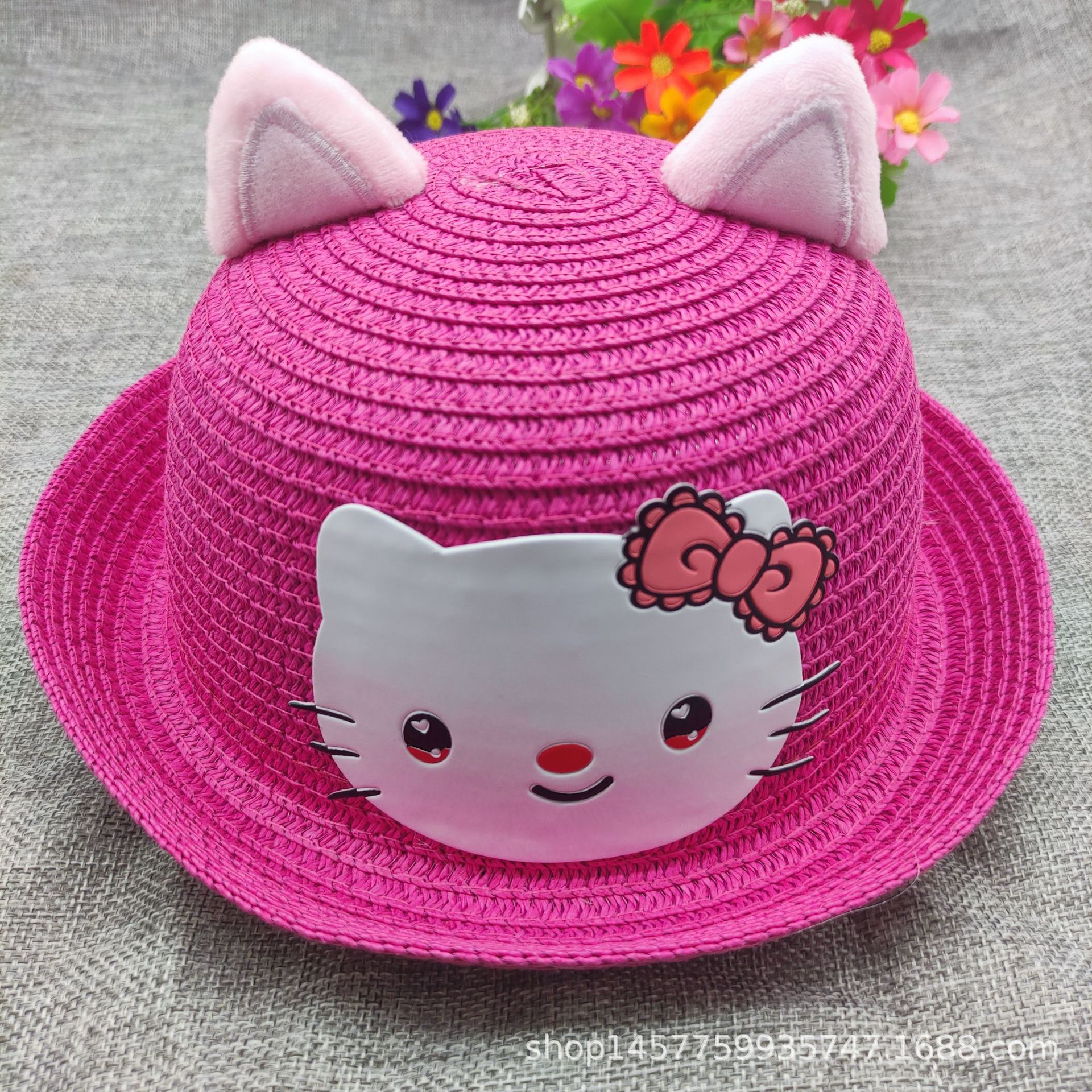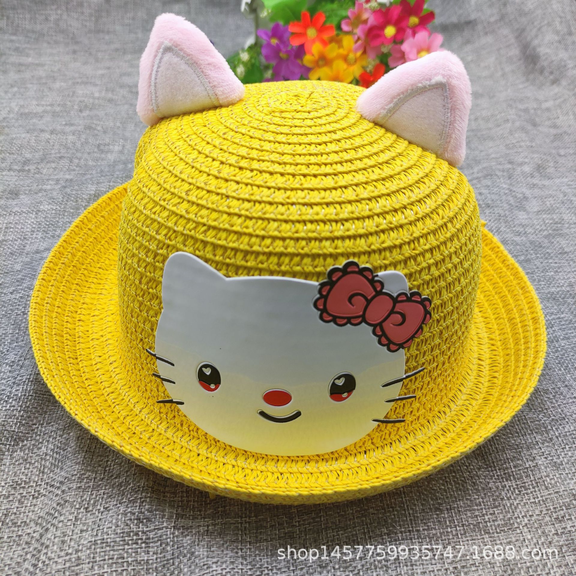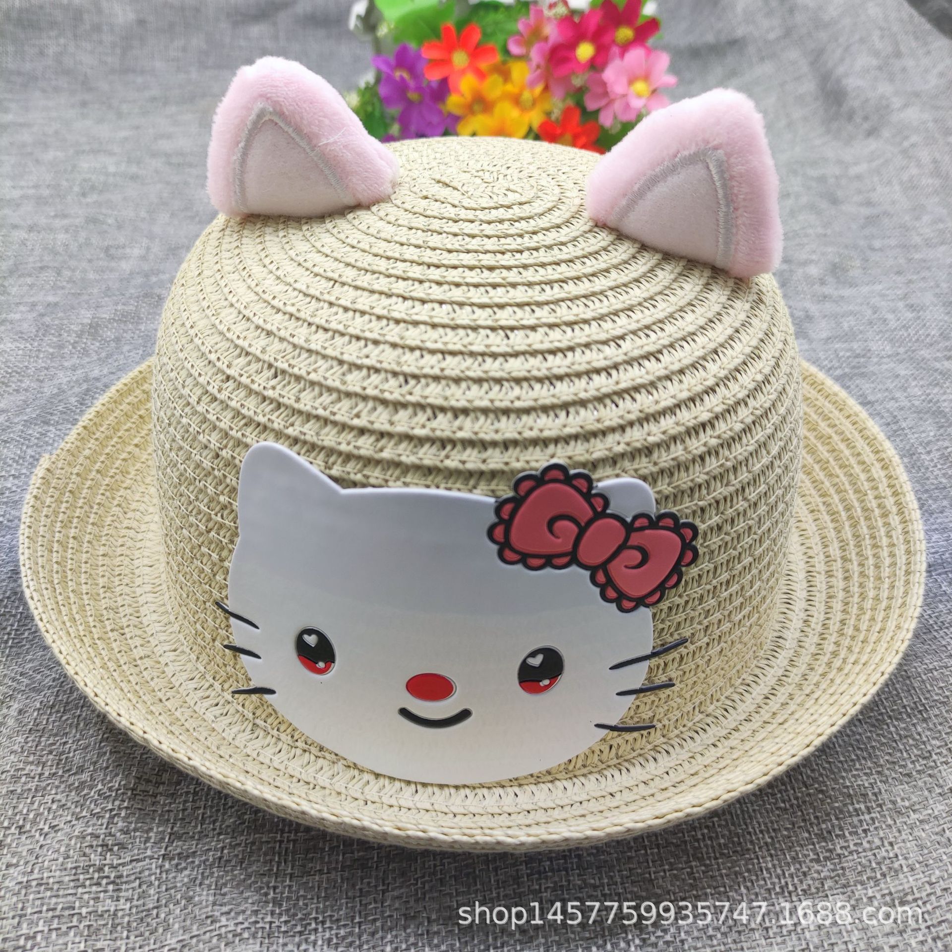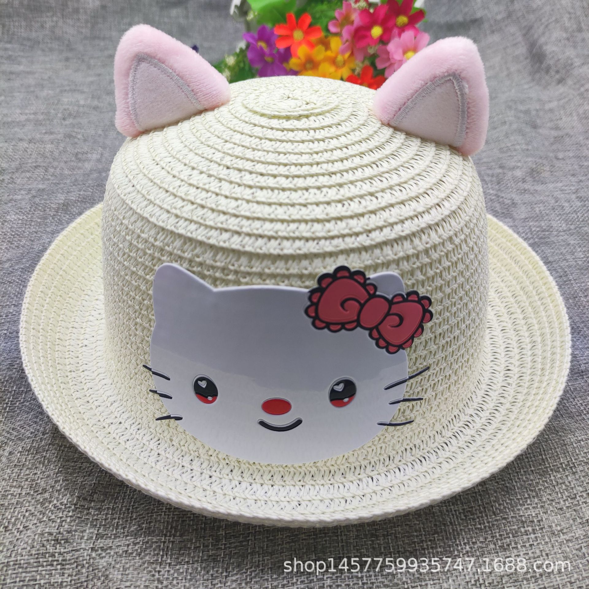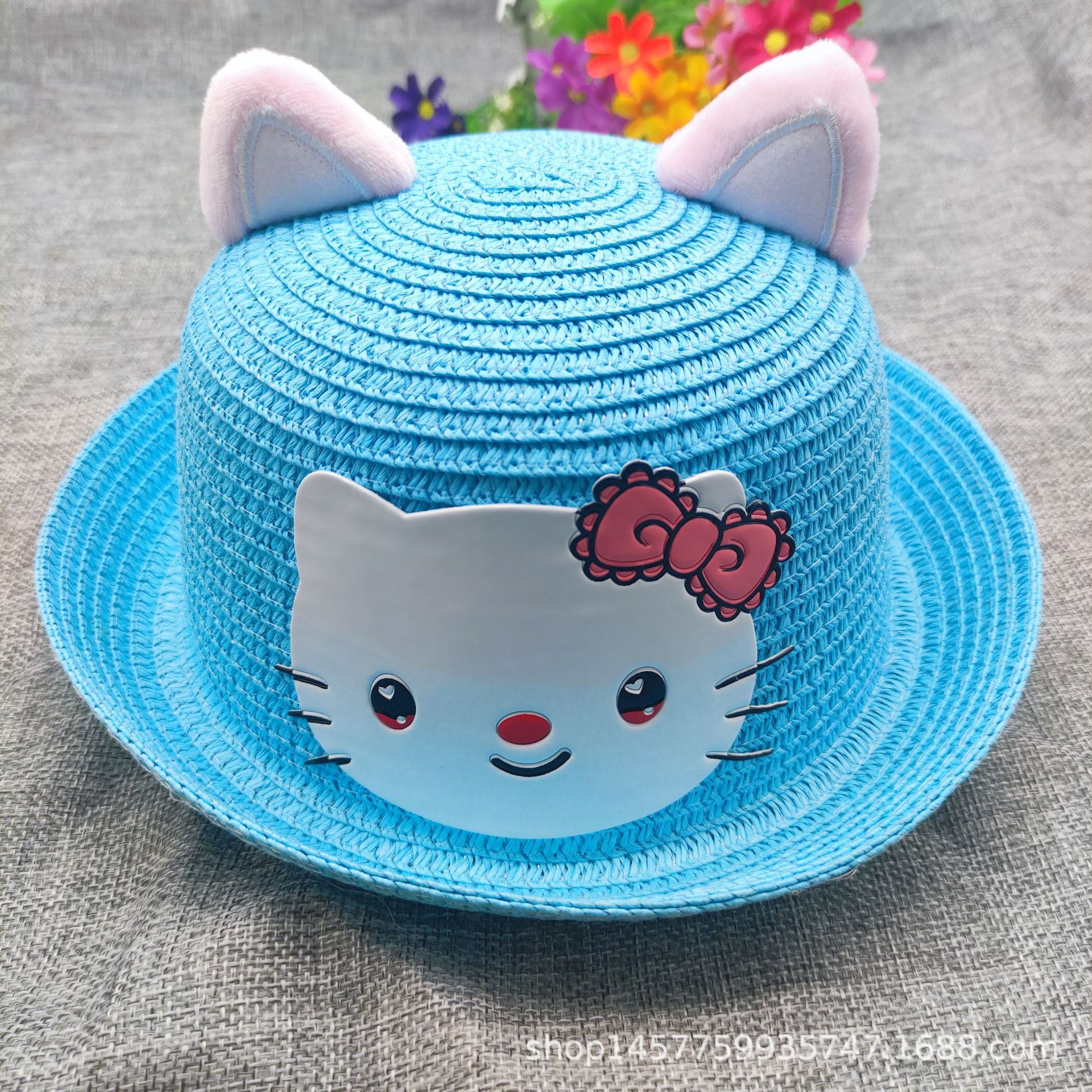 여름 귀여운 고양이 밀짚 모자 사계절 자외선 차단제 탑 모자 어린이 해변 태양 모자 남성용 및 여성용 분지 모자스토어 가기