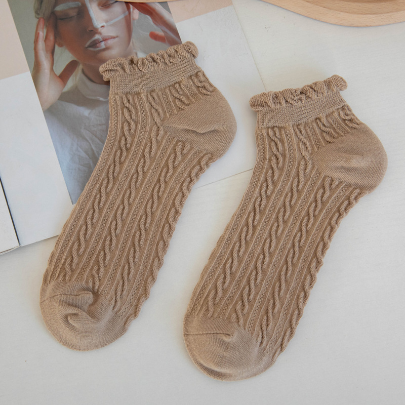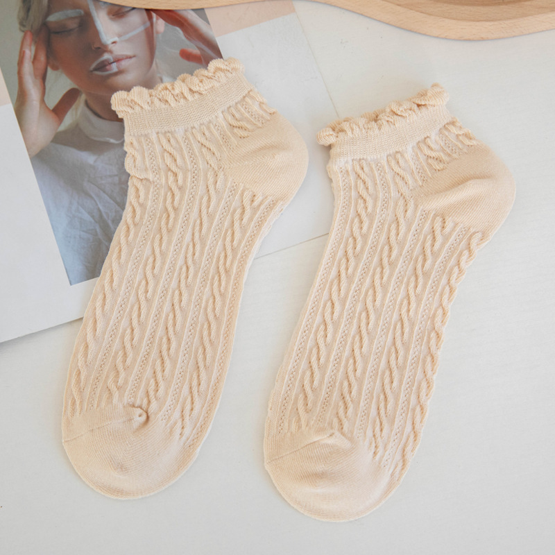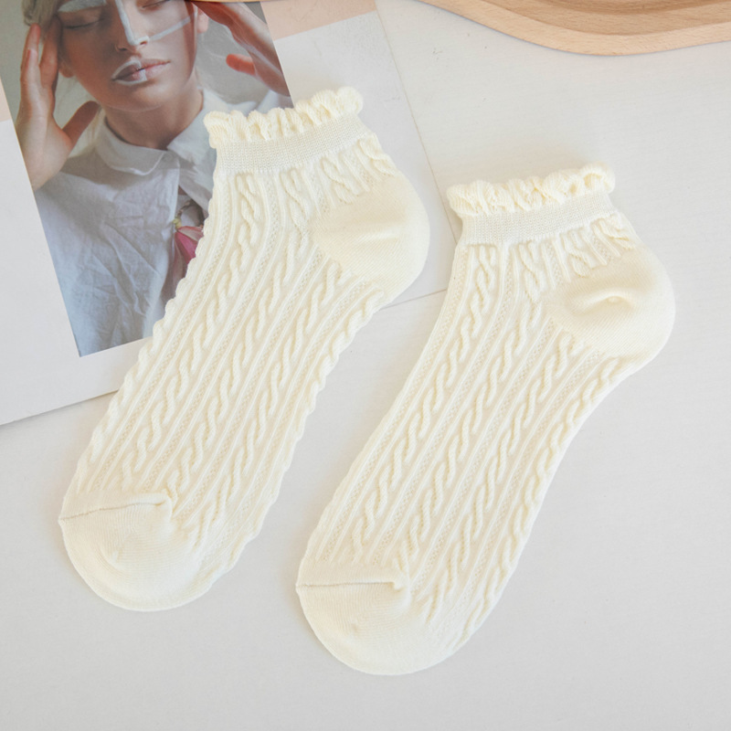 단색 여성 양말 제조 업체 공급 귀여운 일본 레이스 보트 양말 여름 낮은 탑 나무 귀 짧은 튜브 jk 양말 도매스토어 가기
