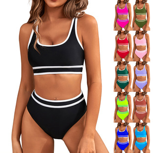 2023欧美新款拼色比基尼外贸bikini泳衣女性感分体泳装