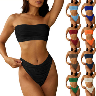 2023新款bikini欧美外贸多色系带性感比基尼分体泳衣bikini泳装