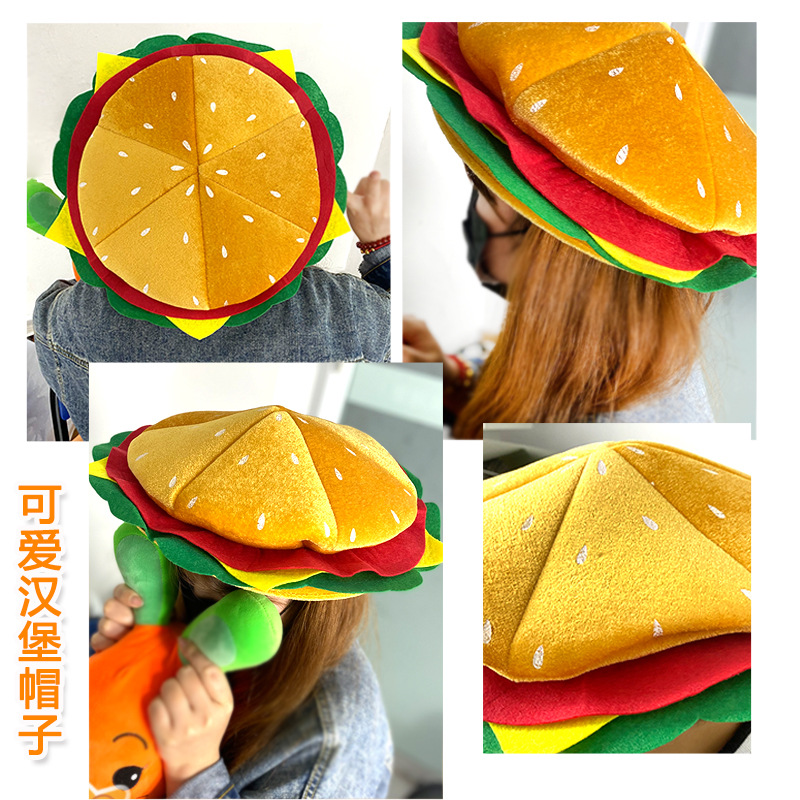 큰 챙 모자 제조업체 라이너 파티 햄버거 모자 사진 촬영 소품 재미있는 게임 공연 인터넷 유명인 도매스토어 가기