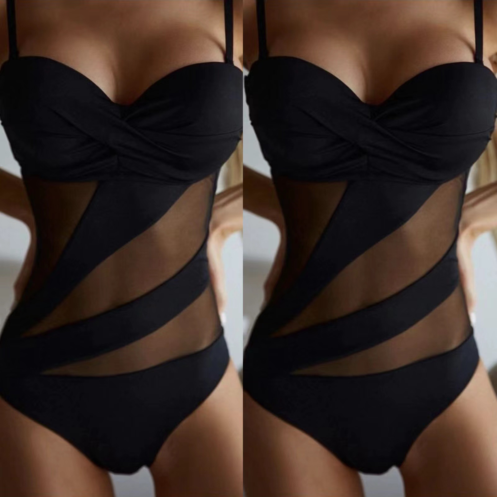 2022 유럽과 미국 대외 무역 크로스 보더 비키니 아마존 솔리드 컬러 섹시 메쉬 스티칭 중공 스틸 원피스 수영복