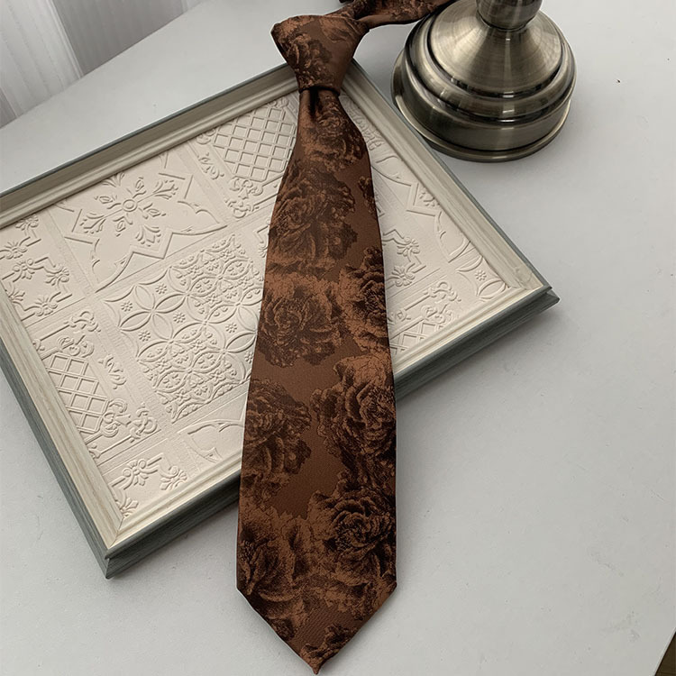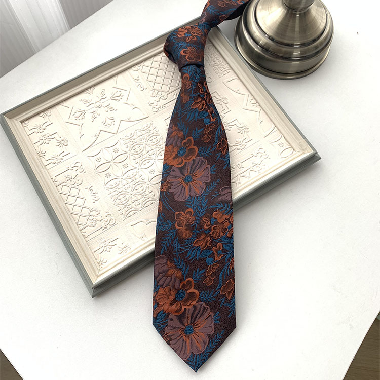 재고 넥타이 남성 정장복 비즈니스 한국 스타일 8cm 어두운 다크 브라운 복고풍 오렌지 큰 꽃 개성 영국 스타일스토어 가기