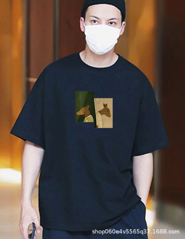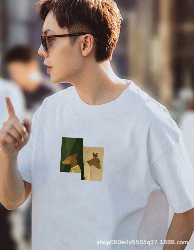 헤비 코튼 루즈한 티셔츠 남성용 프린트 라운드 넥 유행 브랜드 Instagram 스타일 반팔 티셔츠 남성용 한국식 유행 반팔 티셔츠스토어 가기