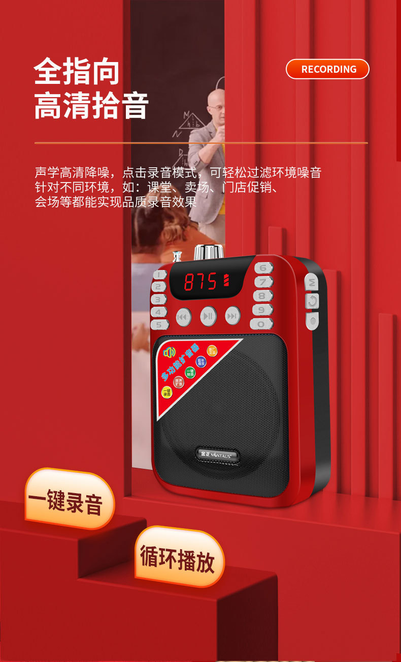 • 레드 블루투스 [듀얼 배터리 수명, 녹음 지원]