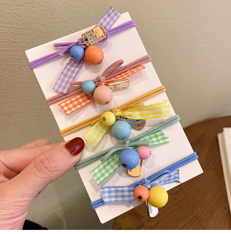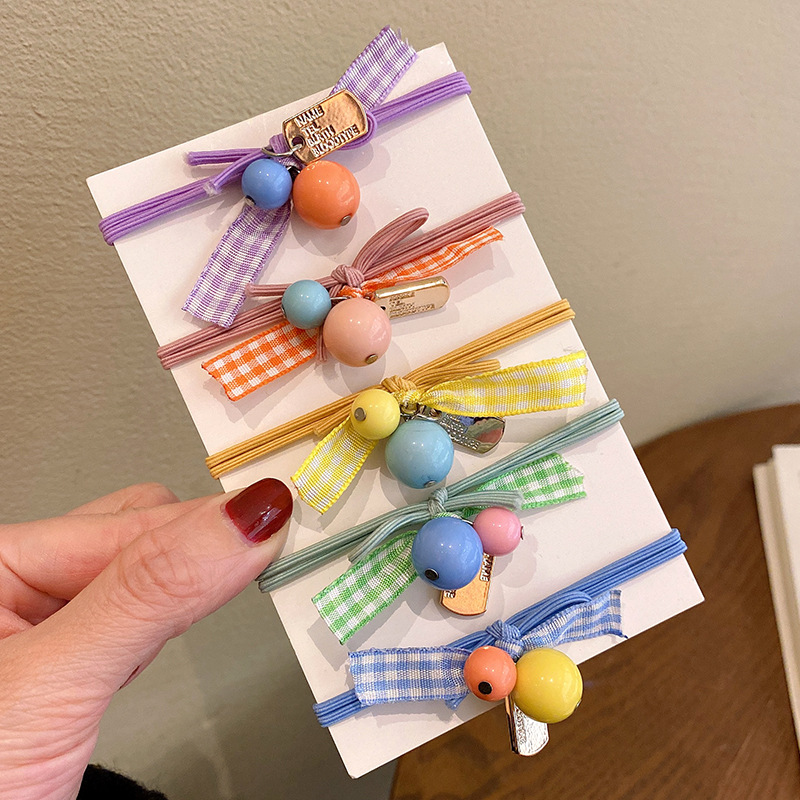 2022 새로운 격자 무늬 리본 헤어 로프 헤어 링 여자 헤어 로프 이우 작은 고무 밴드 보석 헤어 액세서리 도매