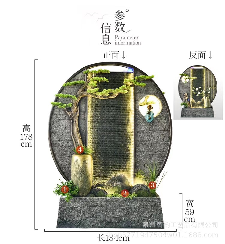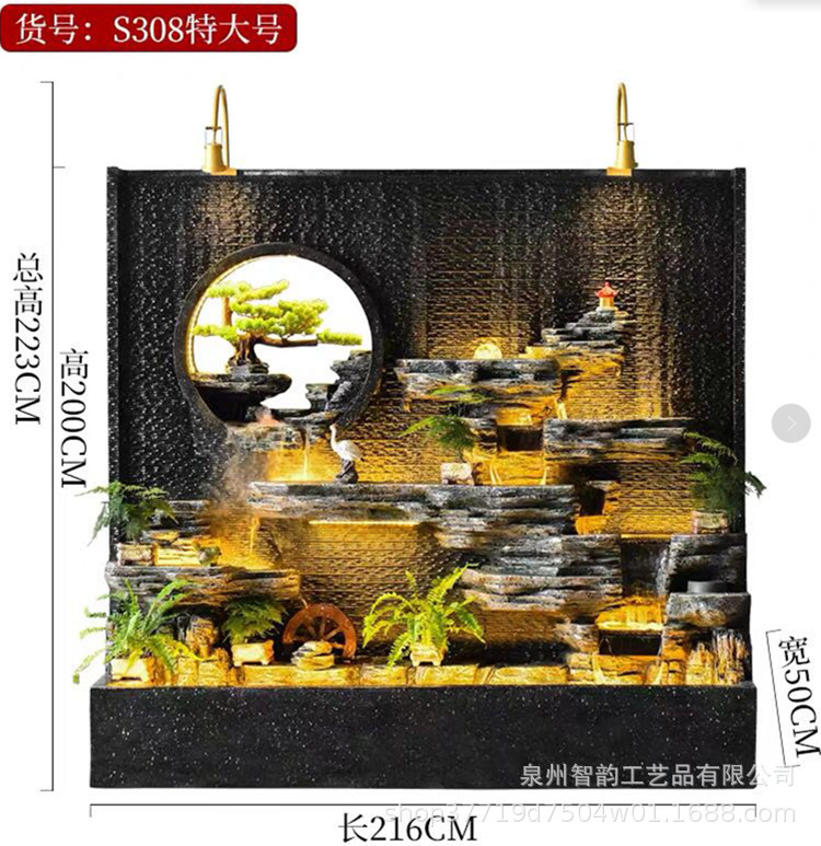 대형 바위 분수 유수 장식품 거실 사무실 찻실 별장 안뜰 마루 풍수 부 물 커텐 월