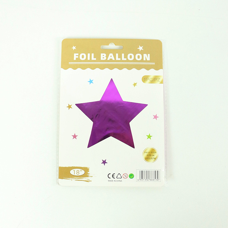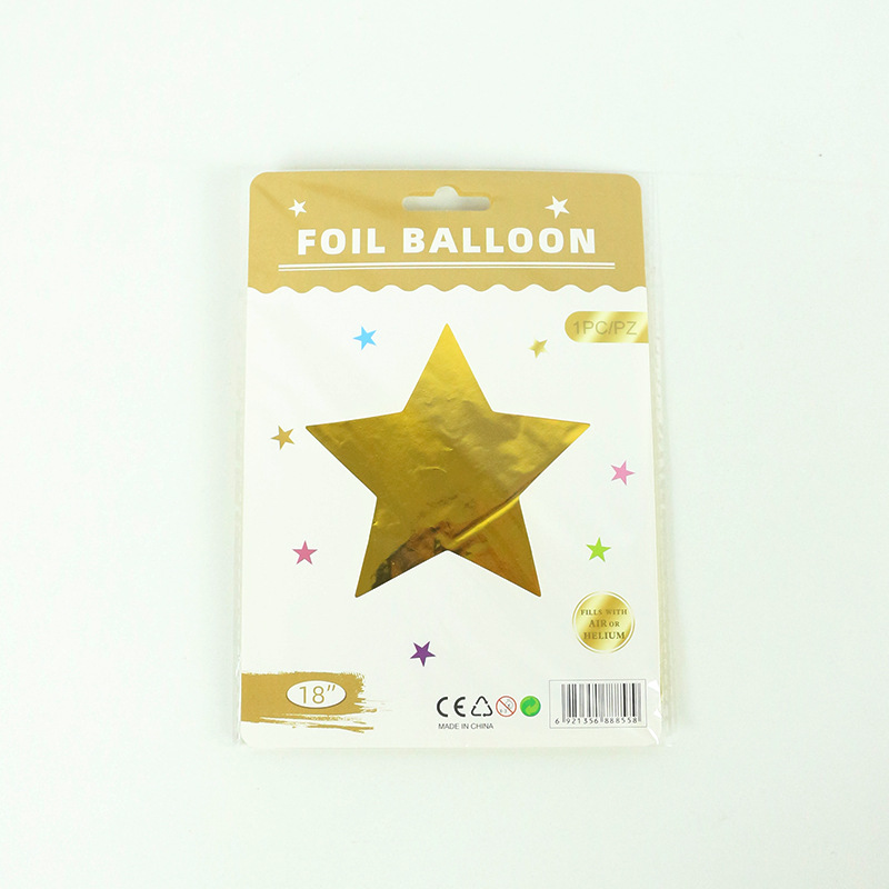 국경 간 전자 상거래 재고 독립 포장 18 인치 알루미늄 필름 오각 별 알루미늄 호일 풍선 양장 종이 카드 도매