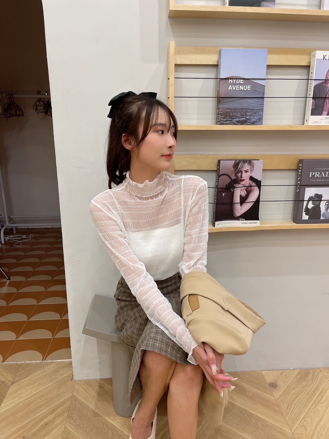 가을 여성용 엄선 레이스 베이스 셔츠, 고급 메쉬 시폰 셔츠, 솔리드 컬러 하프 터틀넥 이너 디자인 탑스토어 가기
