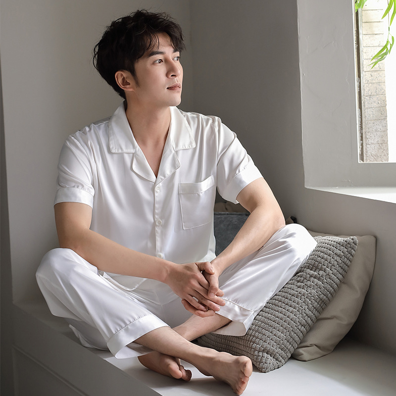 커플의 웨딩 잠옷 여자의 실크 아이스 실크 반팔 바지 신부의 축제 결혼식 큰 빨간 봄과 가을 남자의 세트스토어 가기