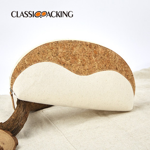 全棉帆布化妆品收纳包环保真木纹拼色拉链旅行洗漱包贝壳形化妆包