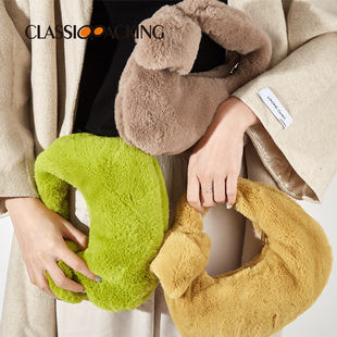 22秋冬网红时尚毛毛包纯色打结毛绒包手提气质mini百搭包ins女包