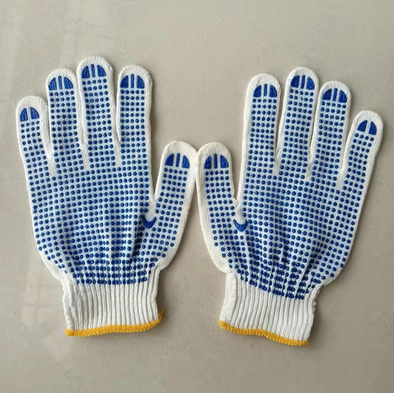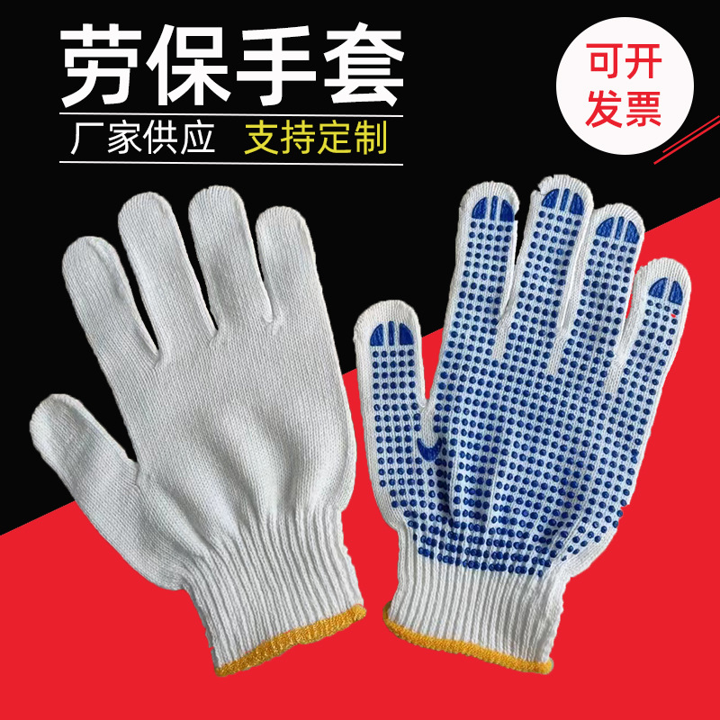 노동 보호 장갑 면사 플라스틱 장갑 두꺼운 내마모성 보호 분배 디핑 미끄럼 방지 구슬 장갑 도매스토어 가기