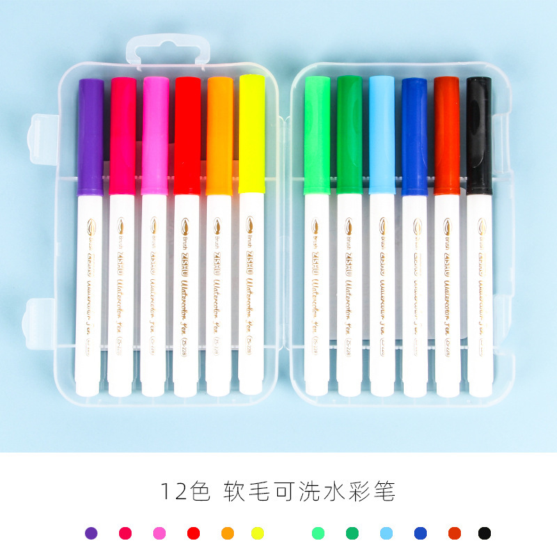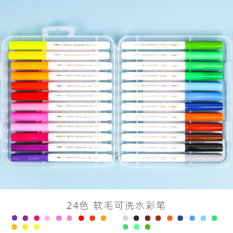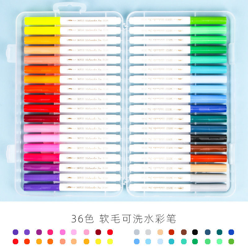 어린이의 부드러운 머리 수채화 펜 어린이 그림 낙서 수성 브러시 세트 12 24 36 48 컬러 학생 펜스토어 가기