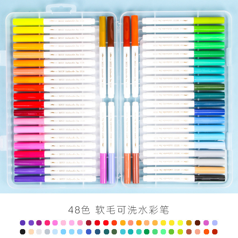 어린이의 부드러운 머리 수채화 펜 어린이 그림 낙서 수성 브러시 세트 12 24 36 48 컬러 학생 펜