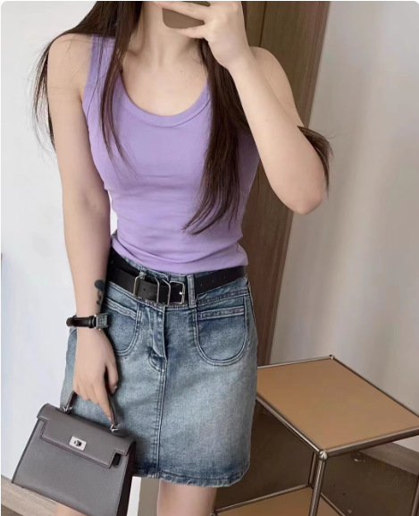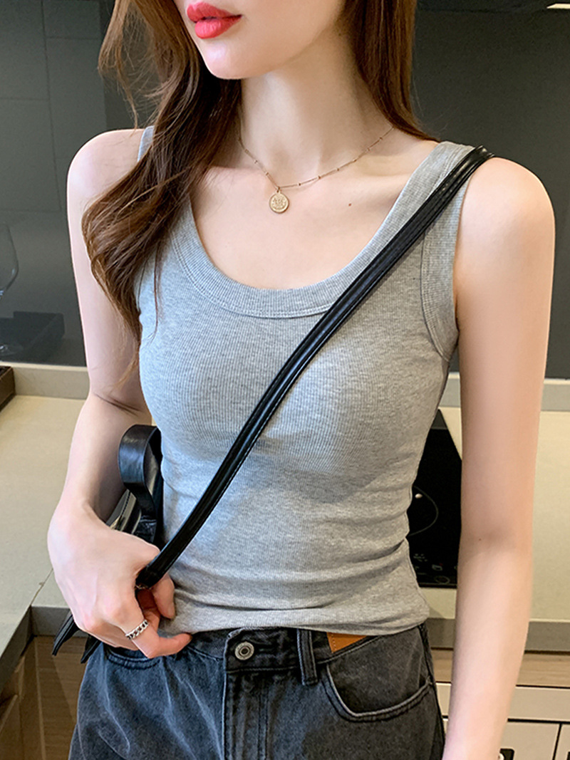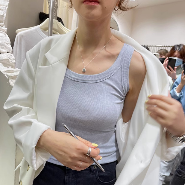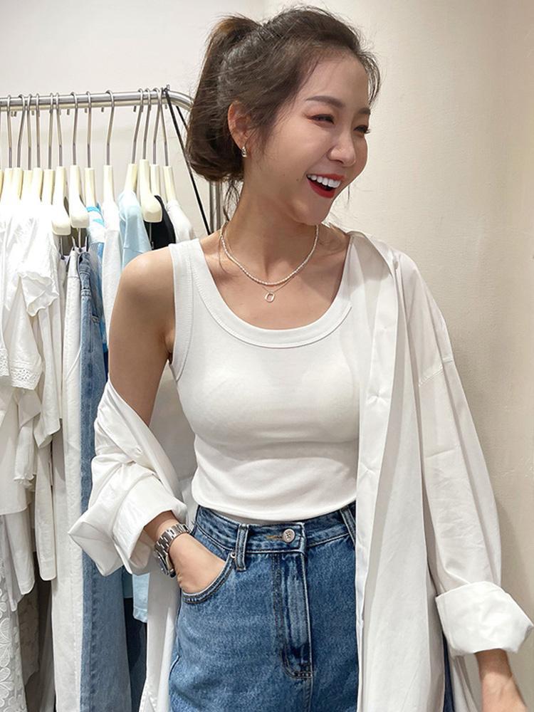 U-넥 시크 퓨어 캐미솔 조끼 여성용 아우터 여름 새로운 슬림 핏 모든 매치 섹시 민소매 티셔츠 로우 칼라 탑 트렌디스토어 가기