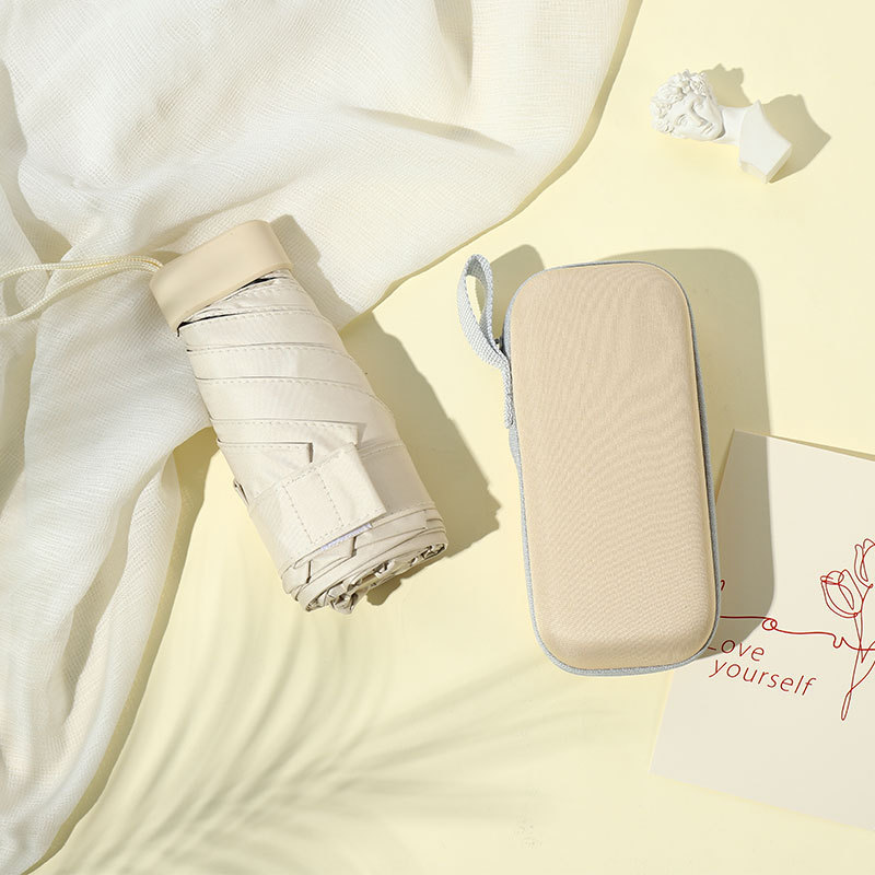 크리 에이 티브 자외선 차단제 작은 금 우산 써니 우산 미니 5 배 우산 여성용 60% 접이식 가방 우산 맑고 비 이중 사용 양산 우산 도매