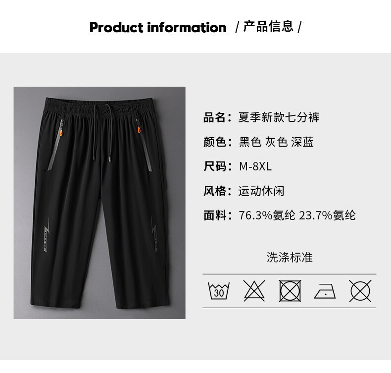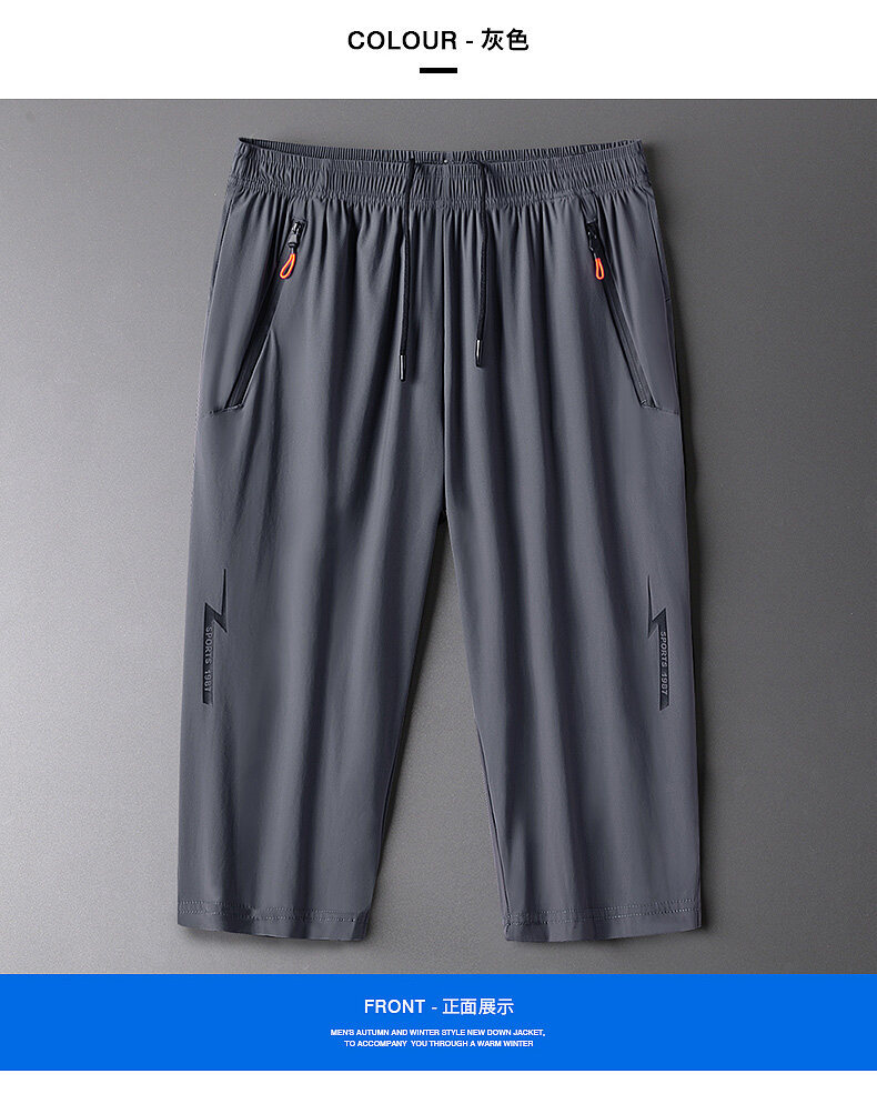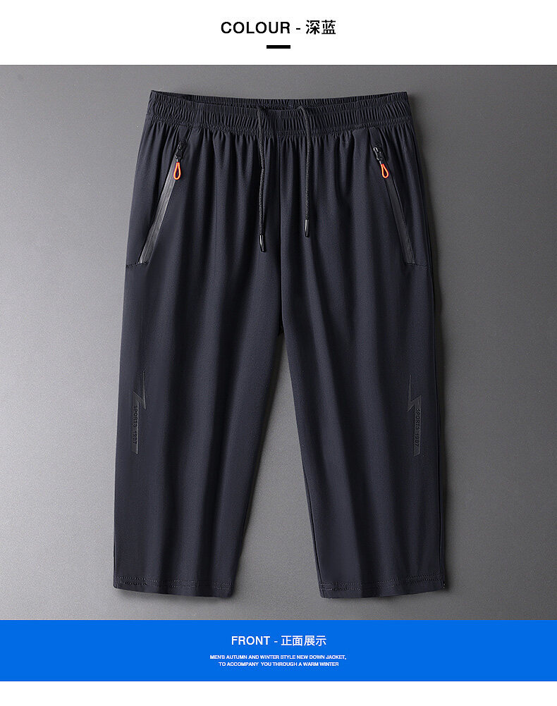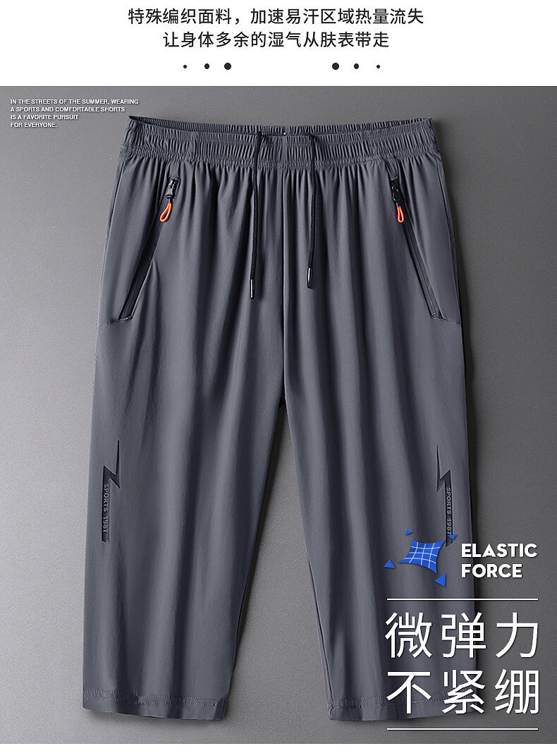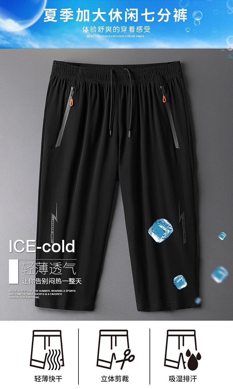 아이스 실크 반바지 남성용 7 점 바지 여름 얇은 바지 느슨한 속건 통기성 카프리 바지 캐주얼 바지 플러스 사이즈