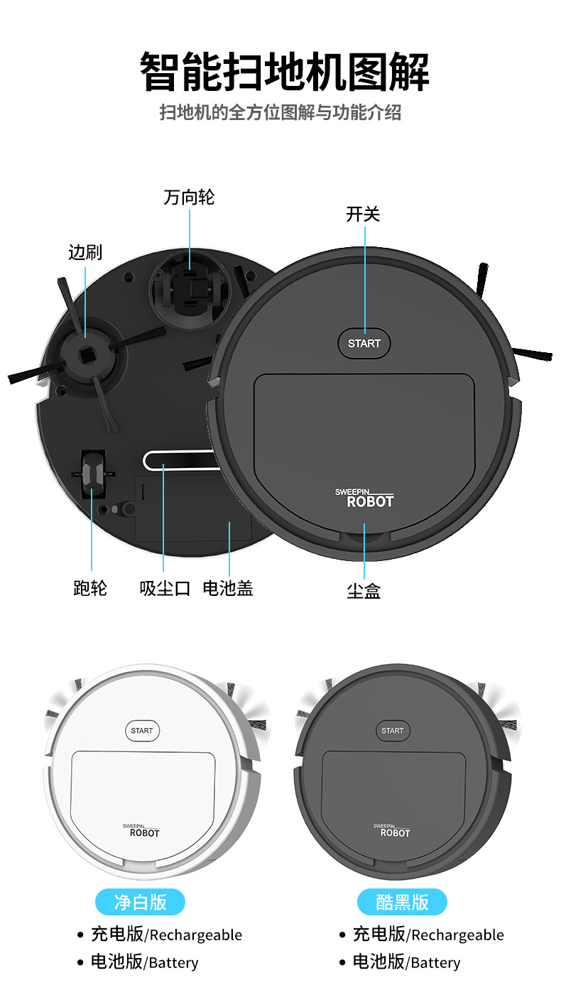 크로스 보더 스위핑 로봇 크리에이티브 미니 스마트 진공 청소기 가정용 충전 자동 흡입 스윕 드래그 도매