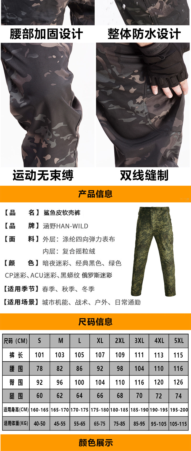 한예 야외 스포츠 플리스 안감 샤크스킨 소프트쉘 카모 팬츠 남녀공용 등산 바지 가을 겨울 플리스 바지스토어 가기