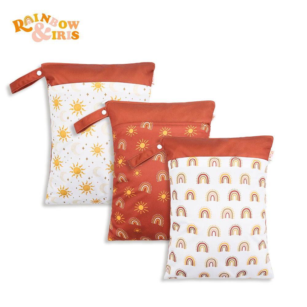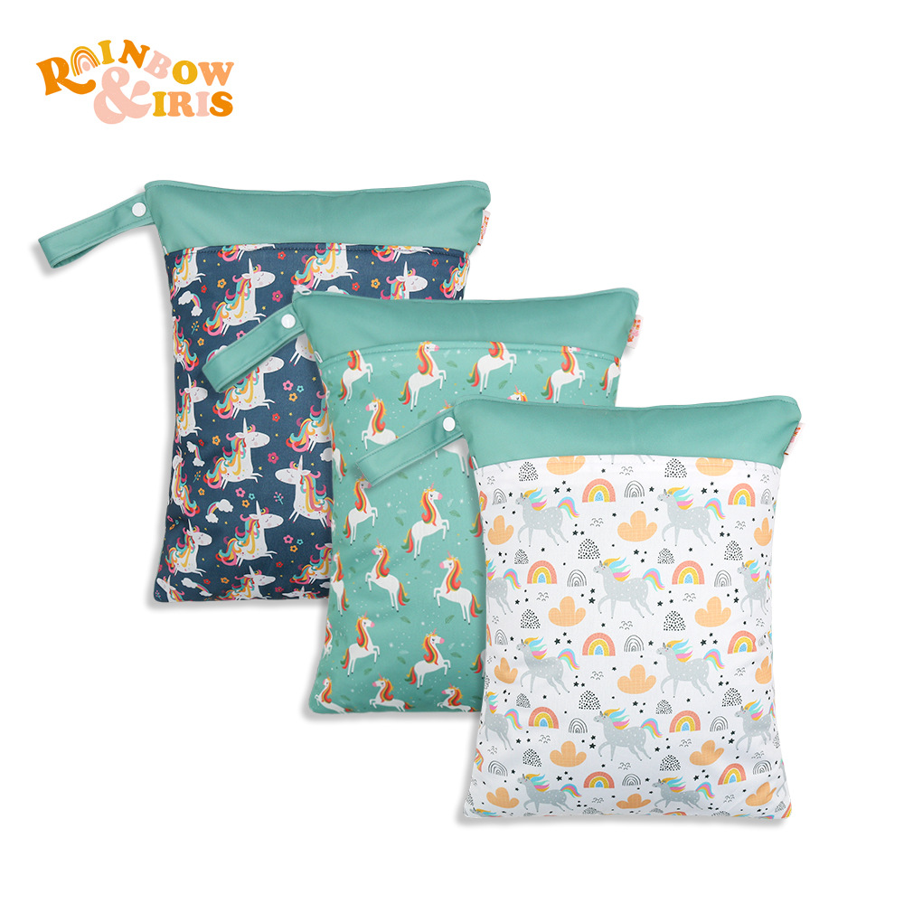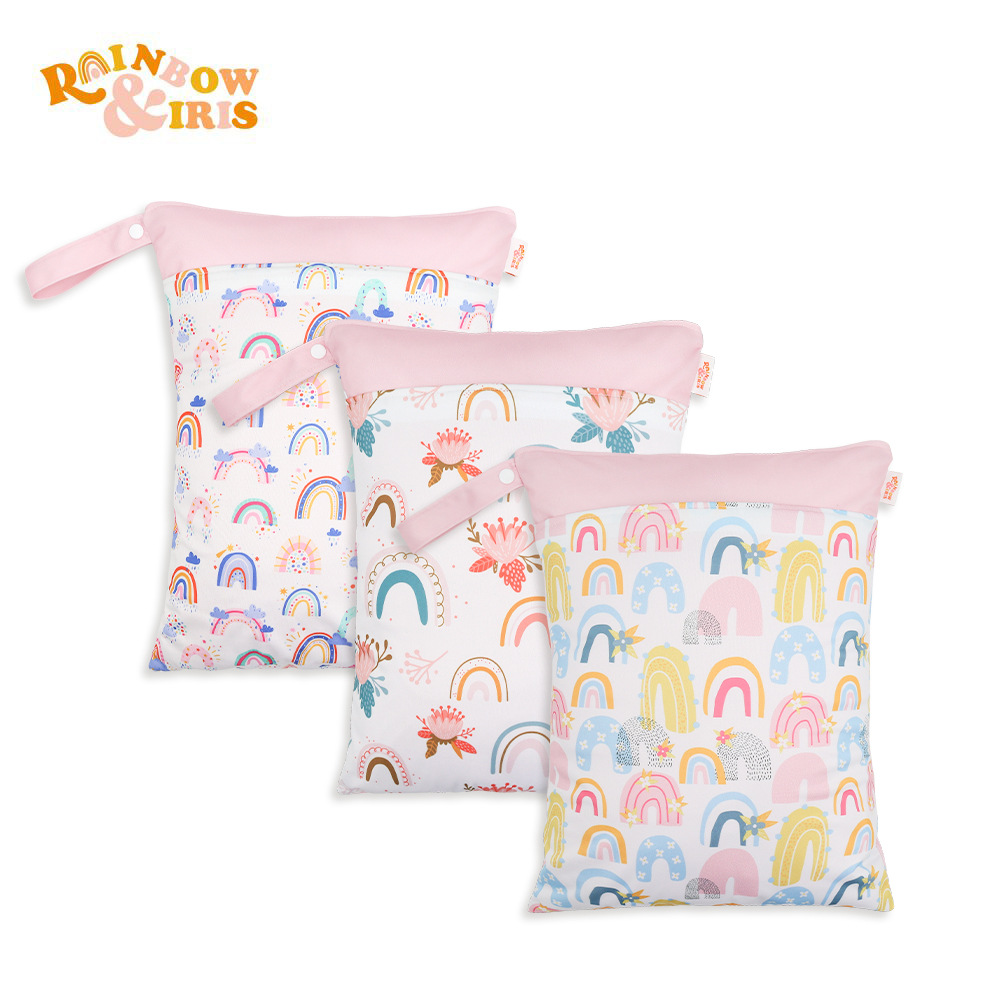 북유럽 디지털 레인보우 프린팅 보관 가방 3 종 세트 습식 및 건식 이중 사용 대용량 기저귀 가방 웨트백