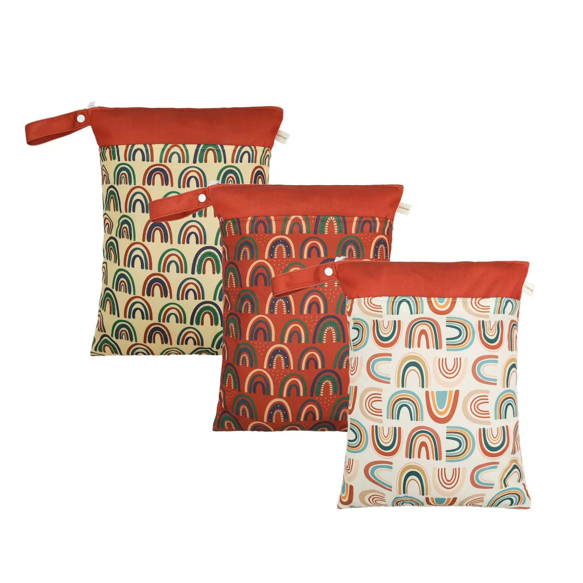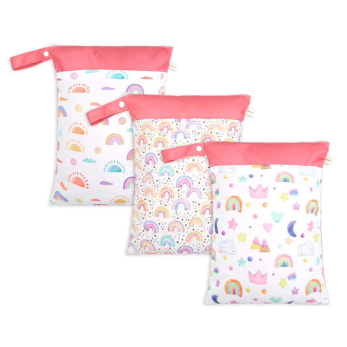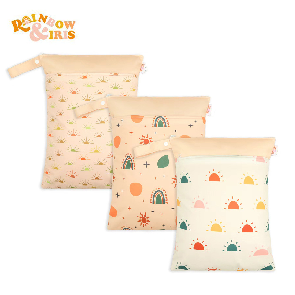 북유럽 디지털 레인보우 프린팅 보관 가방 3 종 세트 습식 및 건식 이중 사용 대용량 기저귀 가방 웨트백