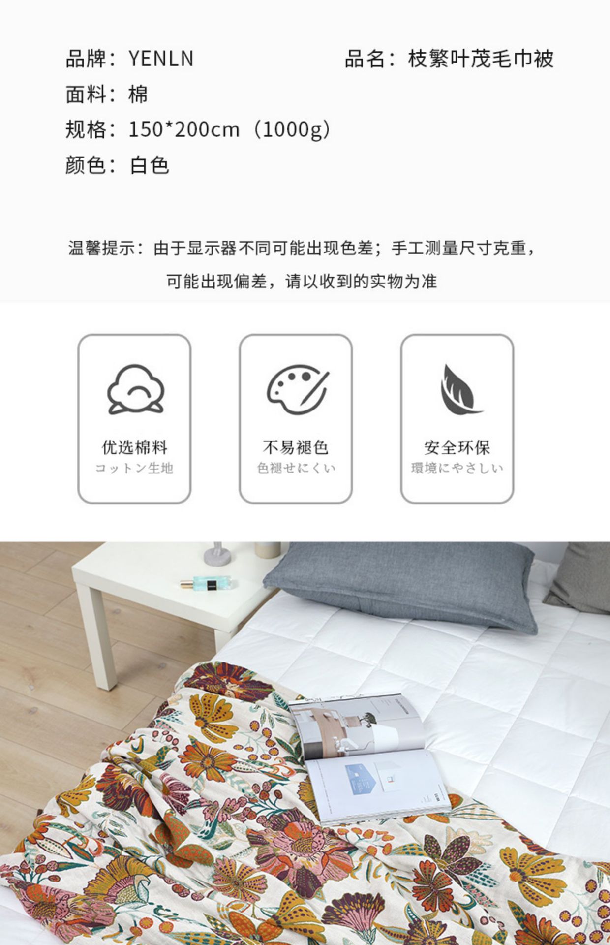 • 무성한 가지와 잎이있는 수건 이불-쌀 화이트