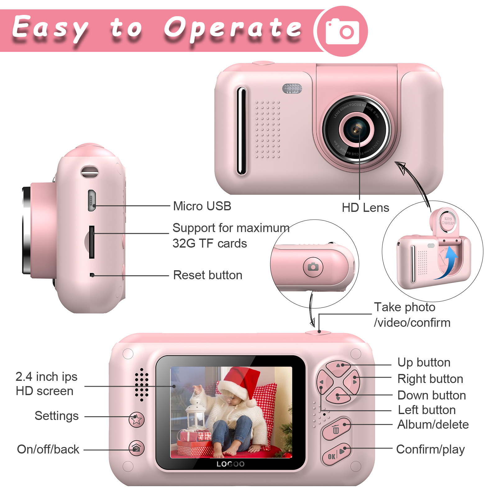 신형 비디오 촬영 어린이용 디지털 카메라 180도 회전 소형 SLR 사진 촬영 고화질 미니 선물 고화질 회전