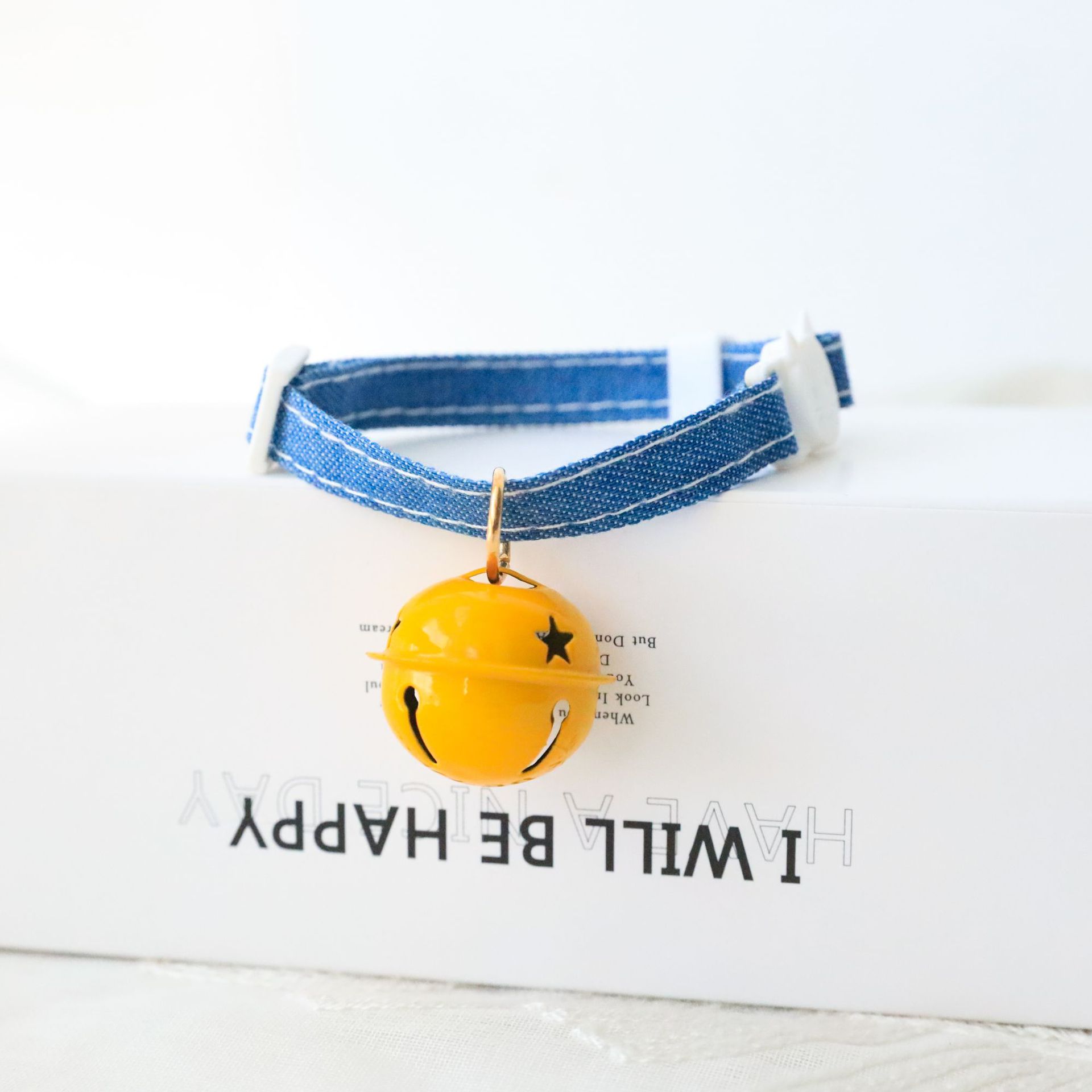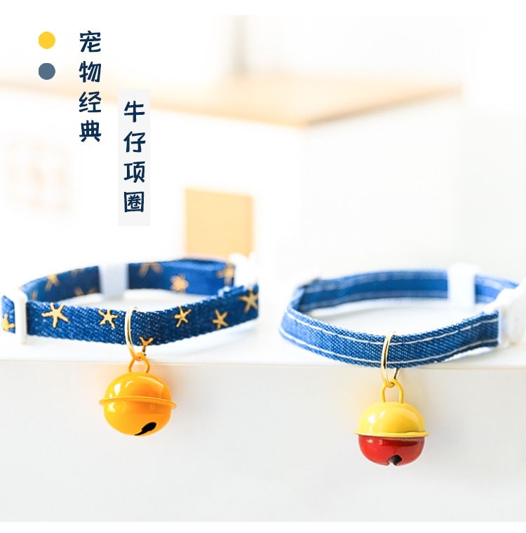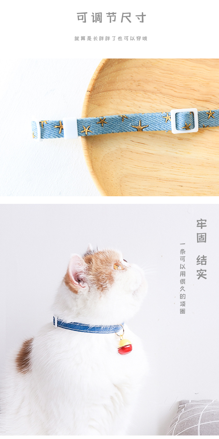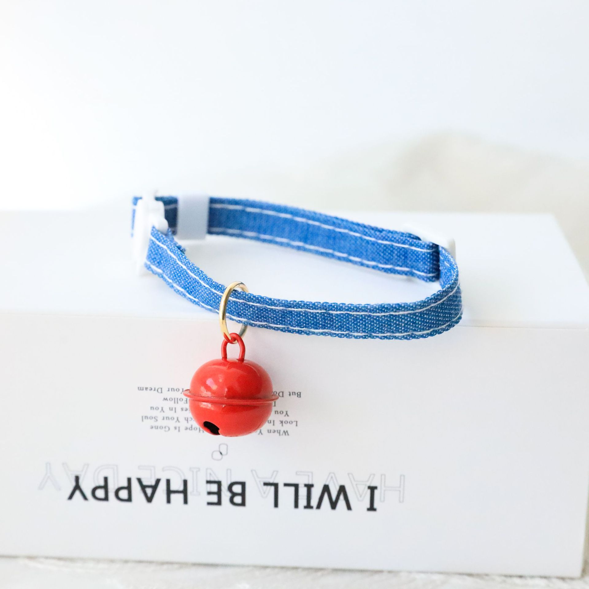 애완 동물 고양이 개 데님 벨 칼라 스카프 목걸이 조정 가능한 수제 원래 귀여운 부드러운 장식