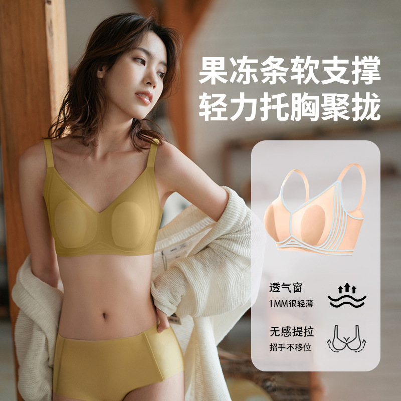 얇고 통기성 좋은 시원한 느낌의 마스크형 속옷 여성용 젤리 소재 부드러운 지지력 고정형 토끼귀 컵 큰 가슴을 작아 보이게 하는 무봉제 브라 여성용스토어 가기